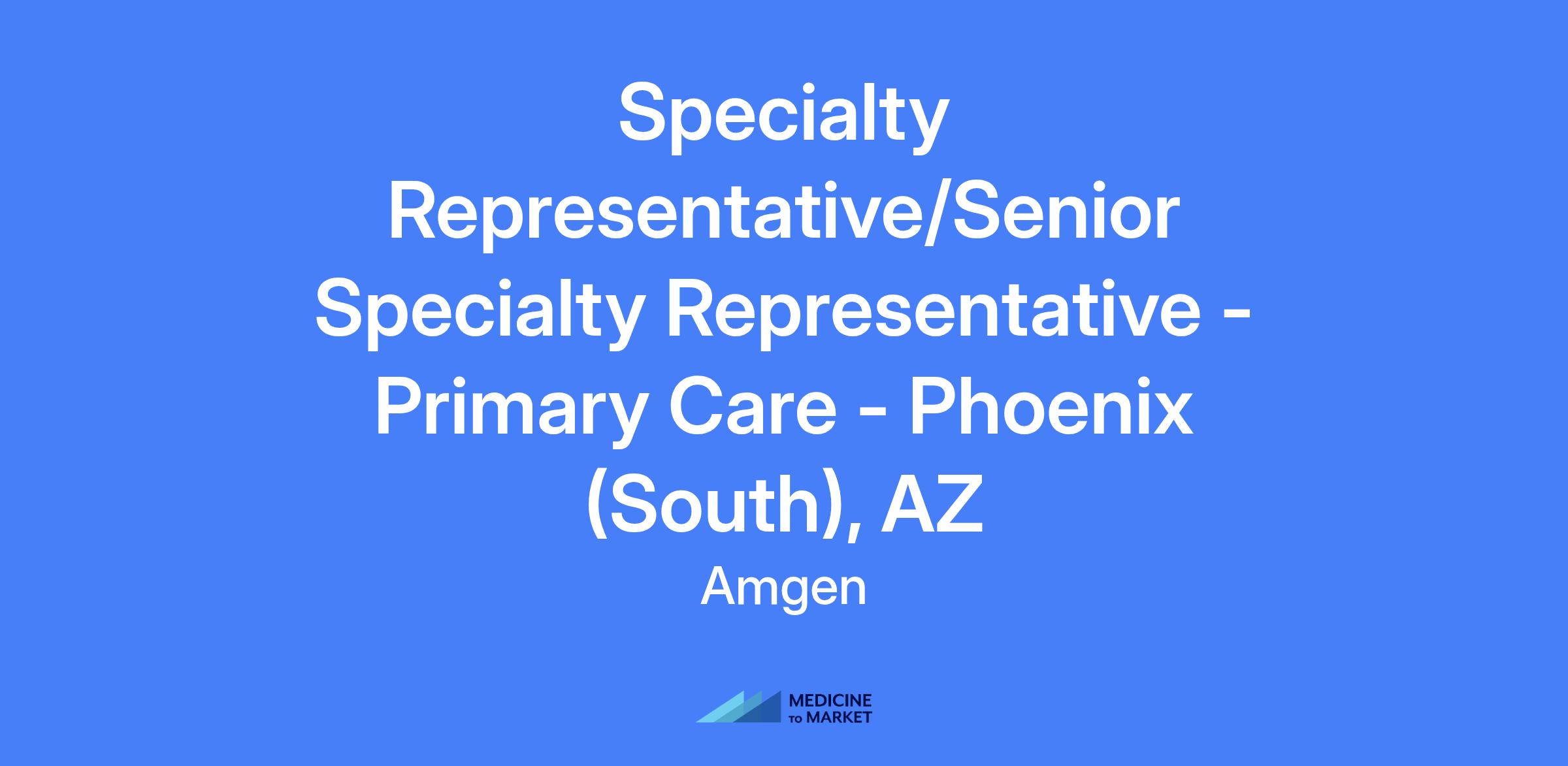 Specialty Representative/Senior Specialty Representative - Primary Care - Phoenix (South), AZ. Territory covers Tucson, AZ; Phoenix, AZ; Chandler, AZ.