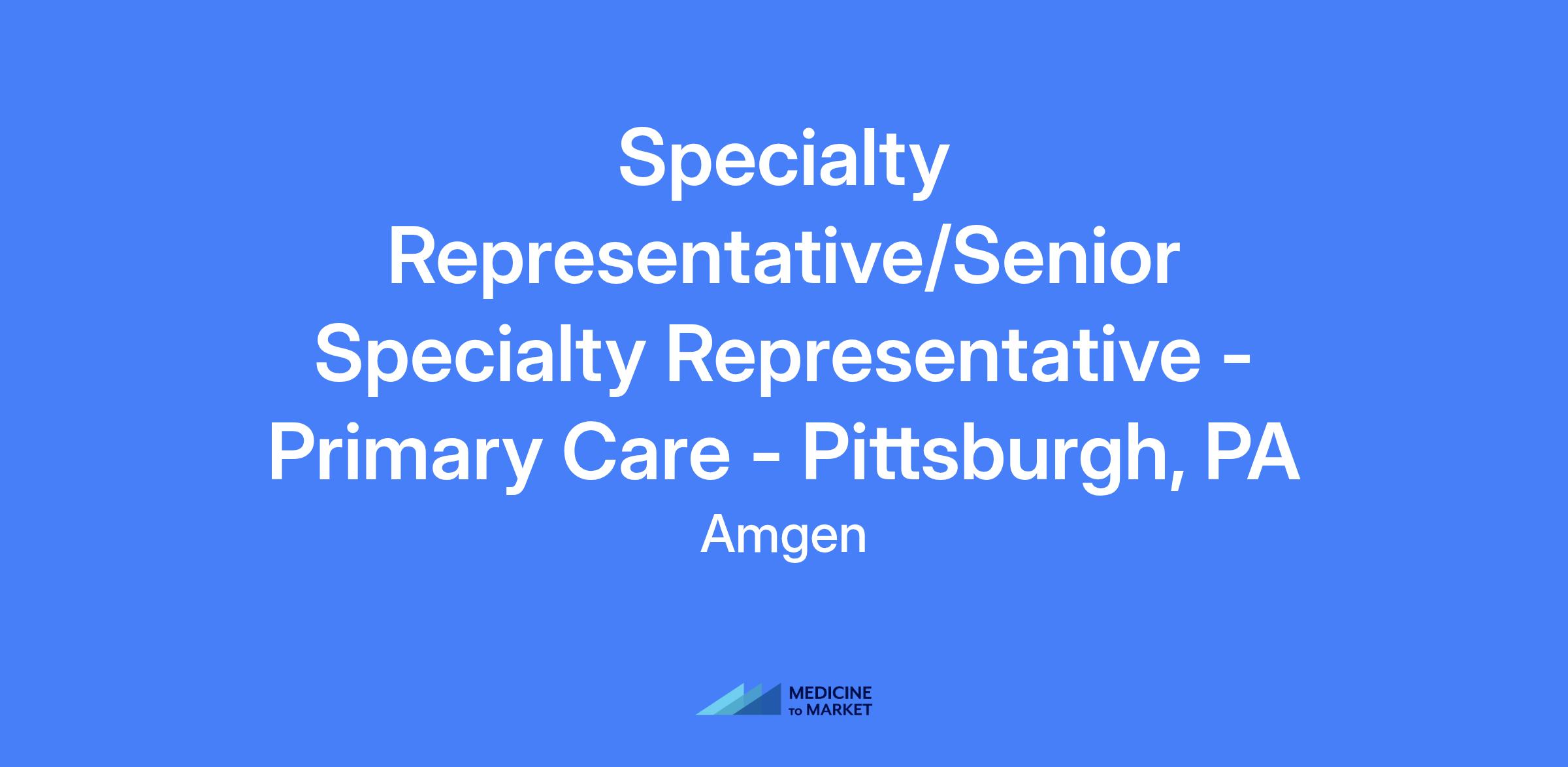 Specialty Representative/Senior Specialty Representative - Primary Care - Pittsburgh, PA. Responsible for delivering clinical knowledge of Amgen products to medical professionals, promoting products, implementing marketing strategy under the guidance of the District Manager, and navigating the payer environment to drive appropriate utilization.