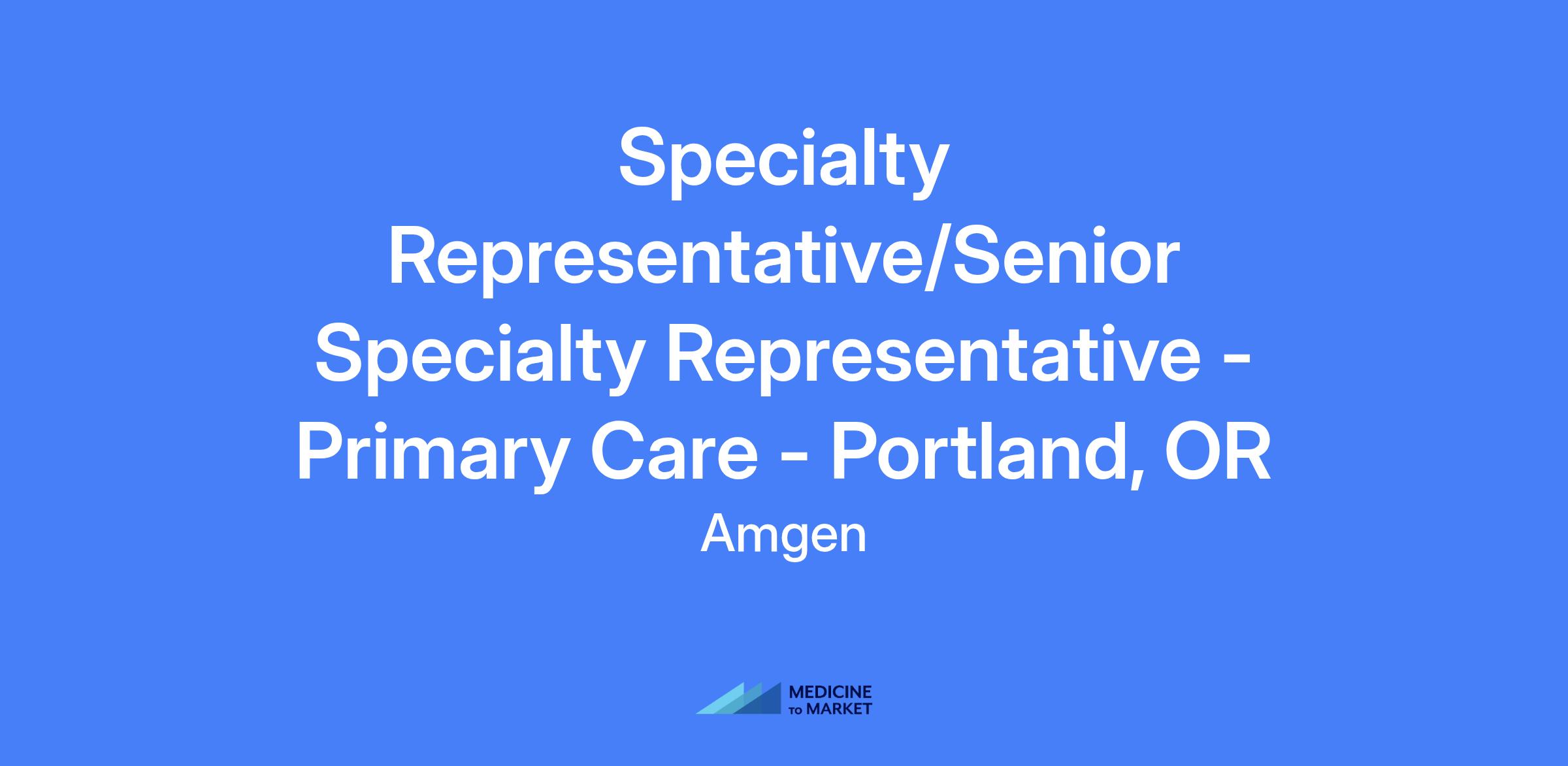 Specialty Representative/Senior Specialty Representative - Primary Care with territory coverage in Portland, OR; Vancouver, WA; Salem, OR. Relocation is not offered.