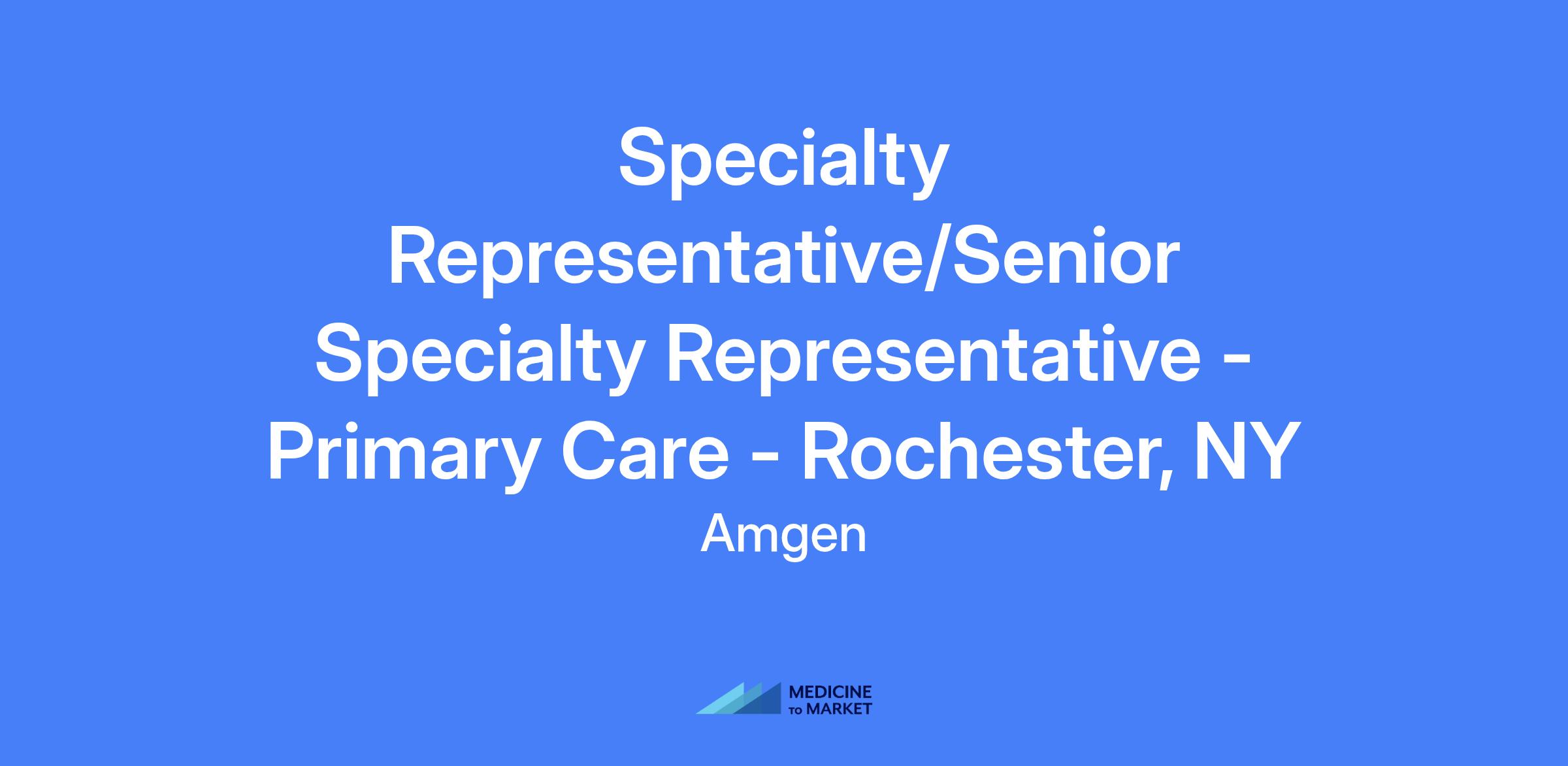Specialty Representative/Senior Specialty Representative - Primary Care - Rochester, NY. Territory covers Buffalo, NY; Rochester, NY; Syracuse, NY. Relocation is not offered for this role.