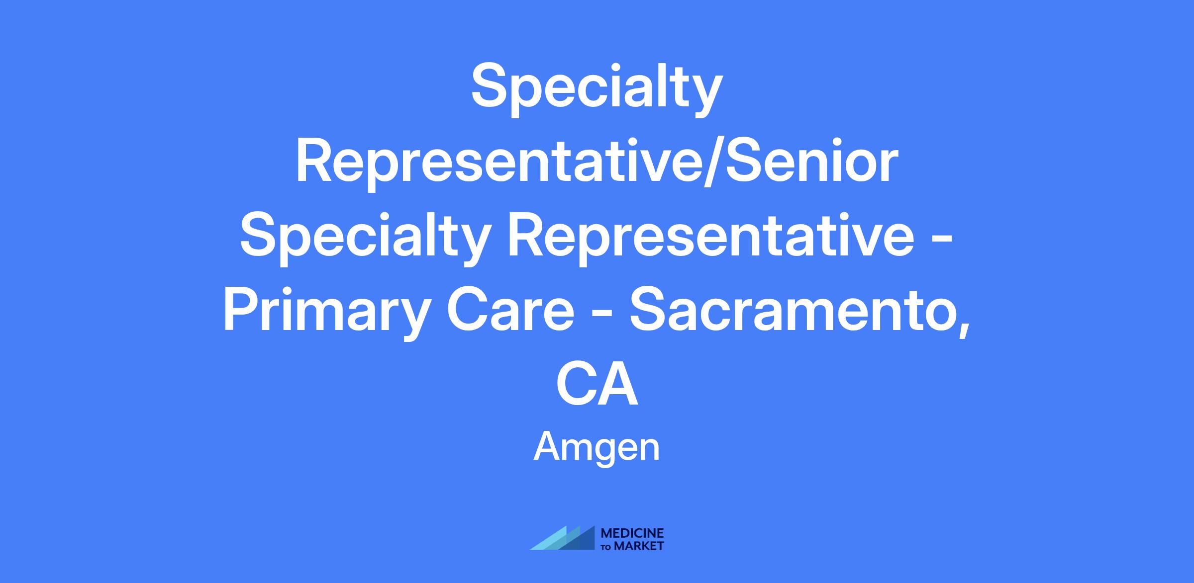 Specialty Representative/Senior Specialty Representative - Primary Care - Sacramento, CA. Territory includes Sacramento, CA; Stockton, CA; Reno, NV. Relocation not offered.