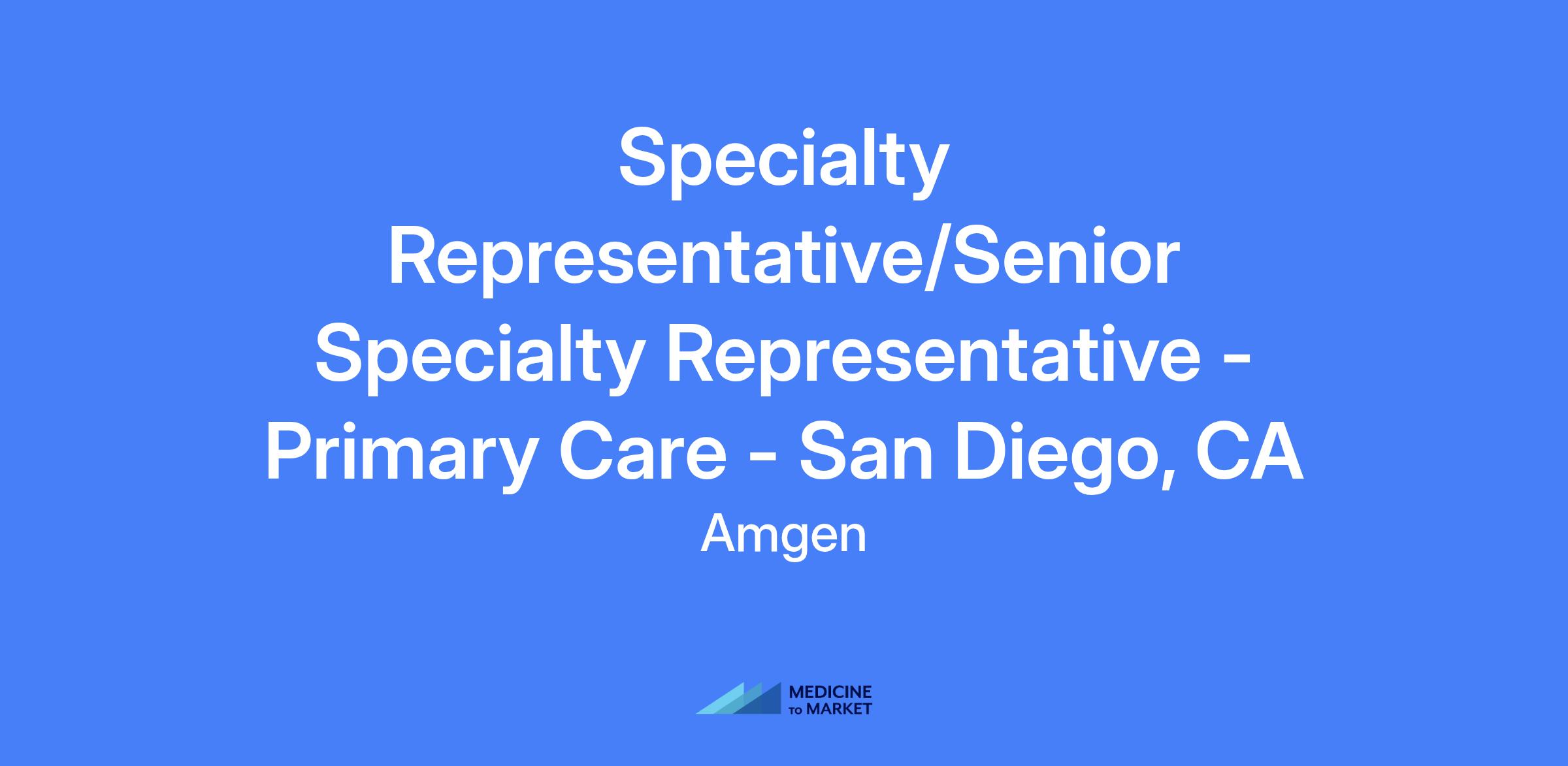Specialty Representative/Senior Specialty Representative - Primary Care - San Diego, CA. Territory covers San Diego, Chula Vista, and Escondido. Relocation is not offered.
