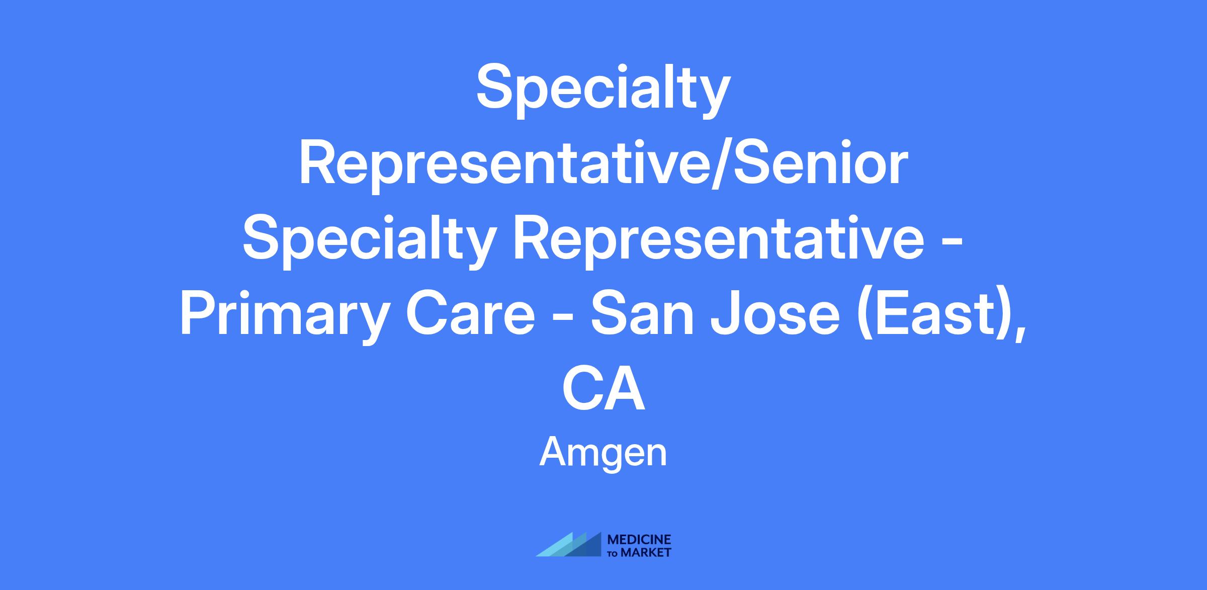 Specialty Representative/Senior Specialty Representative - Primary Care - San Jose (East), CA. Territory includes San Jose, San Francisco, and Oakland. Relocation is not offered.