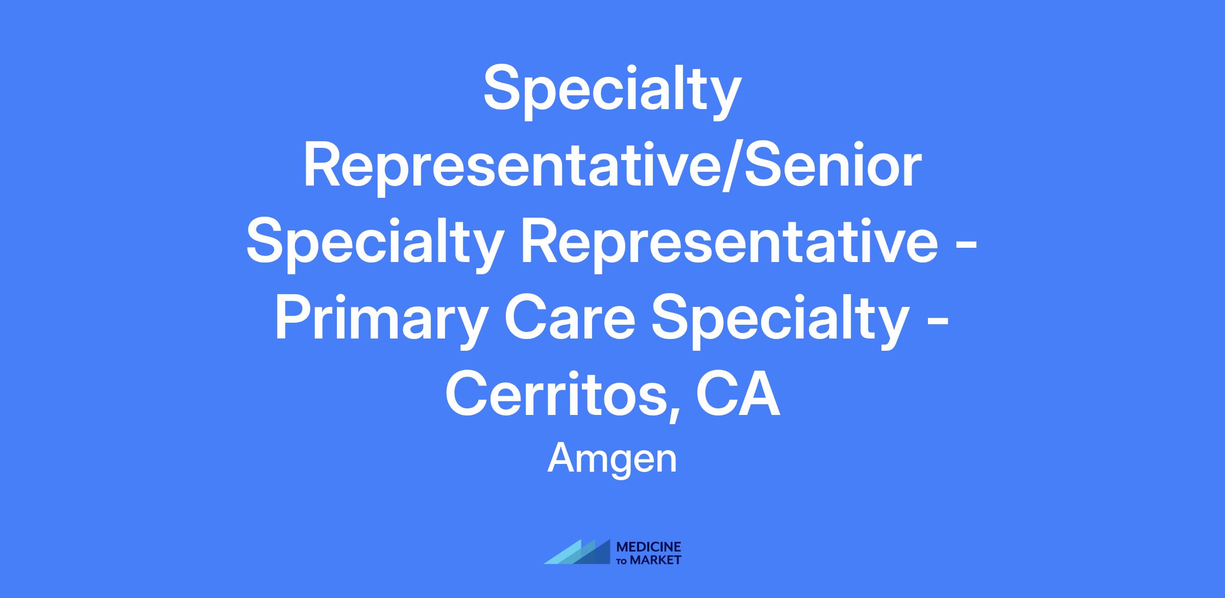 Specialty Representative/Senior Specialty Representative - Primary Care Specialty - Cerritos, CA. Territory covers: Cerritos, City of Industry, Downey, Hacienda Heights, La Habra, La Mirada, La Palma, Norwalk, Pico Rivera, Rowland Heights, Whittier.