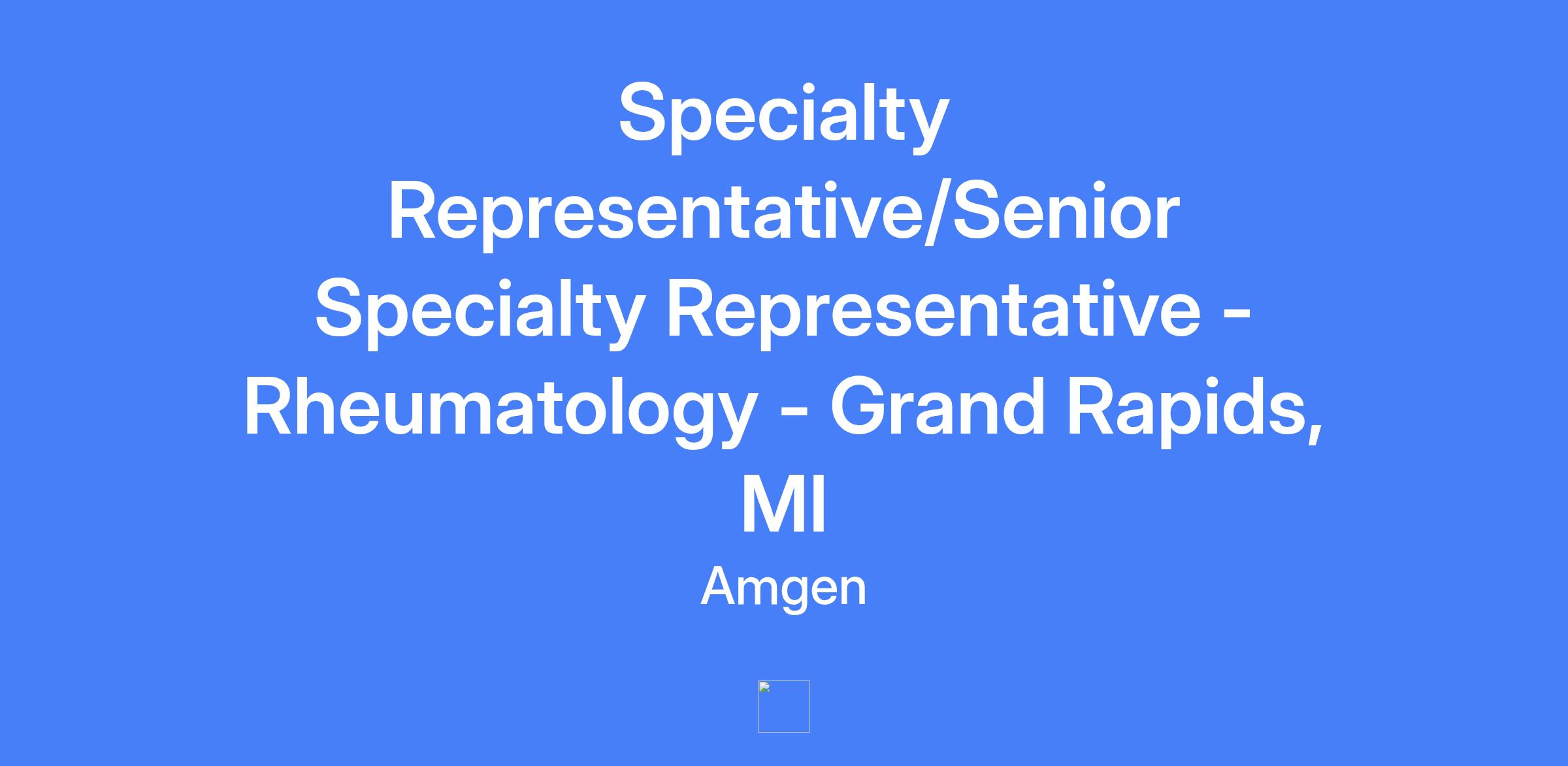 Specialty Representative/Senior Specialty Representative - Rheumatology, covering Grand Rapids, MI territory (Grand Rapids, Lansing, Kalamazoo, Battle Creek, MI).