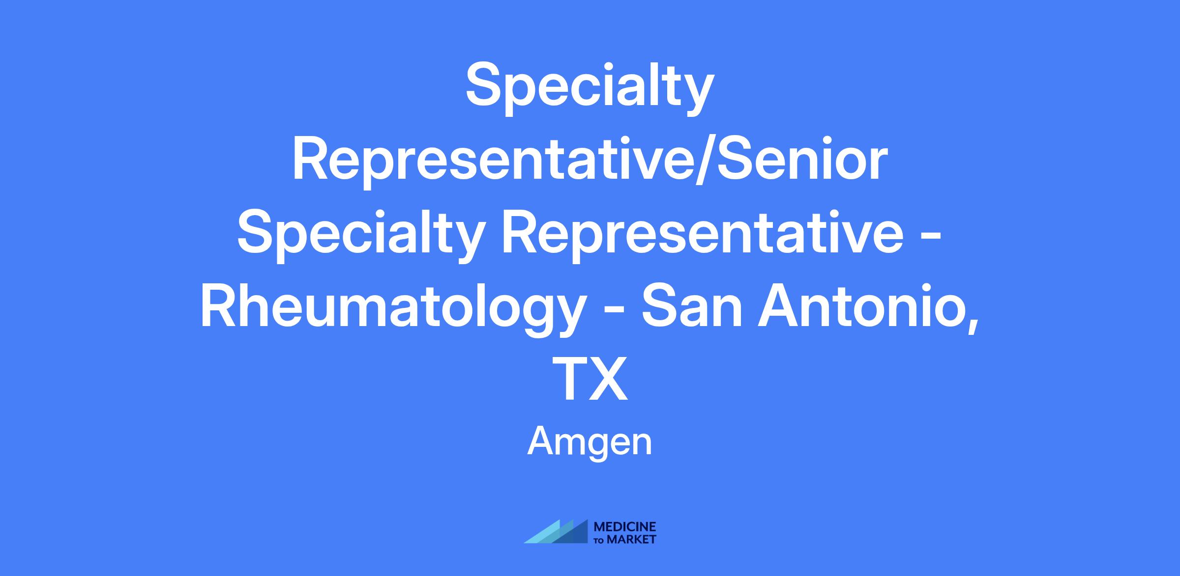 Specialty Representative/Senior Specialty Representative β Rheumatology - San Antonio, TX. Territory covers: Rio Grande Valley, Corpus Christi and Laredo, TX.