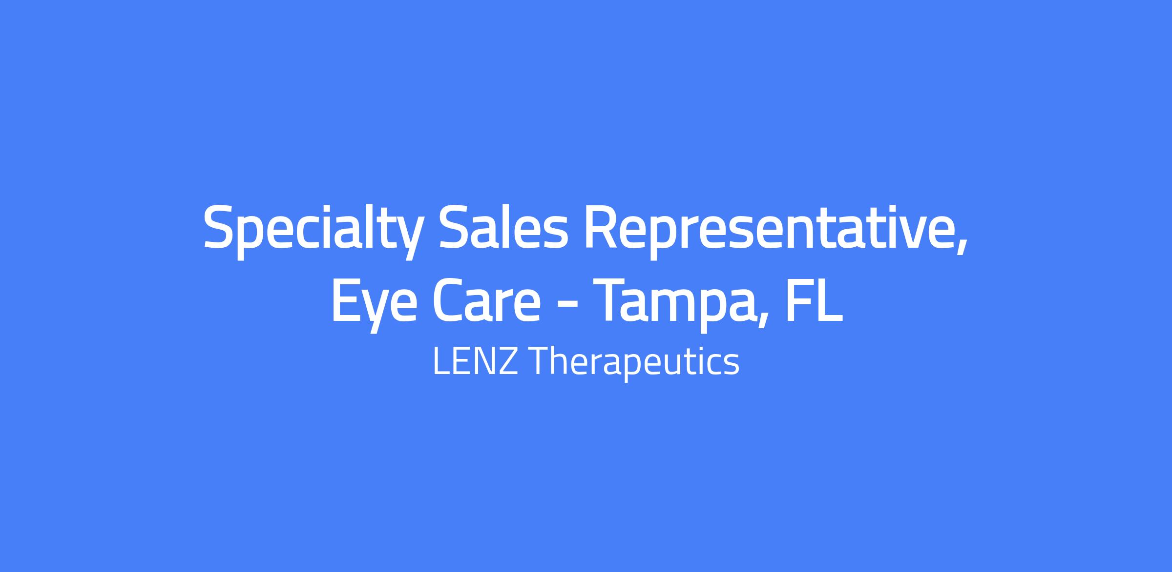 Specialty Sales Representative to launch and grow a product in the ophthalmic presbyopia market, driving territory disease-state education and maximizing sales through account development and execution.