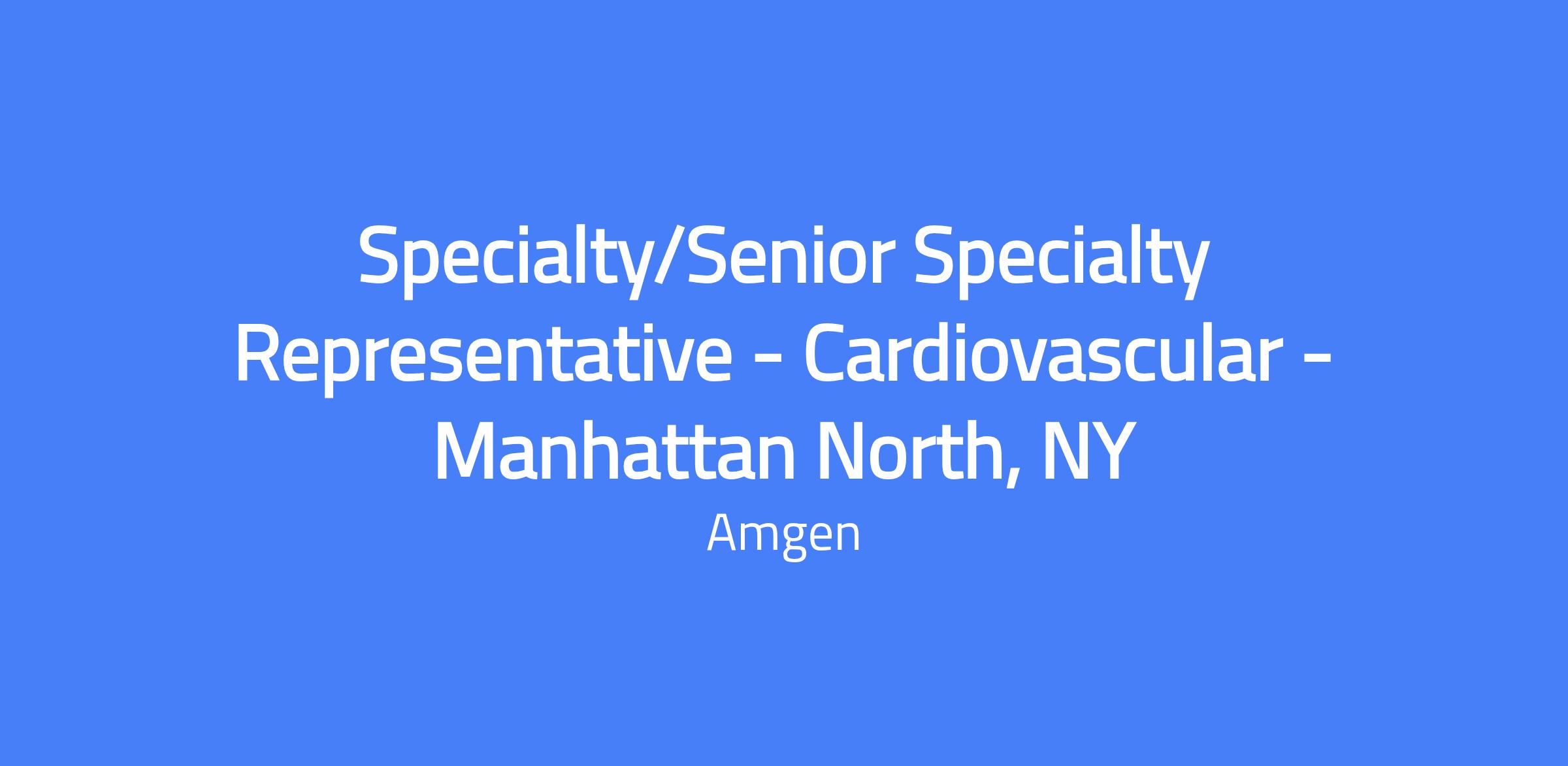 Specialty/Senior Specialty Representative - Cardiovascular - Manhattan North, NY