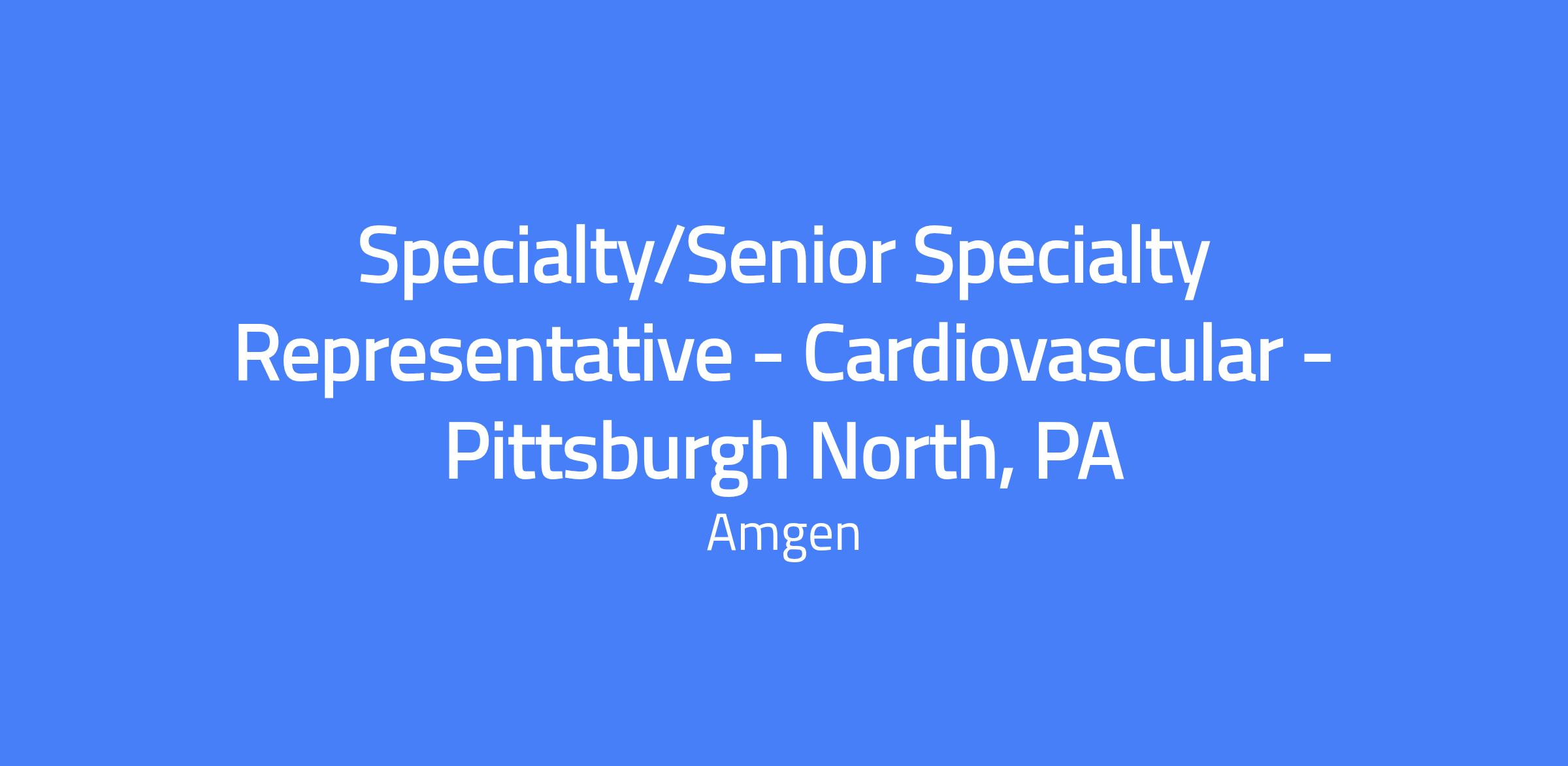 Specialty/Senior Specialty Representative to deliver clinical knowledge of Amgen products to medical professionals and drive territory sales within the cardiovascular area. Act as the primary customer contact, implementing marketing strategy and promoting Amgen products as guided by the District Manager.