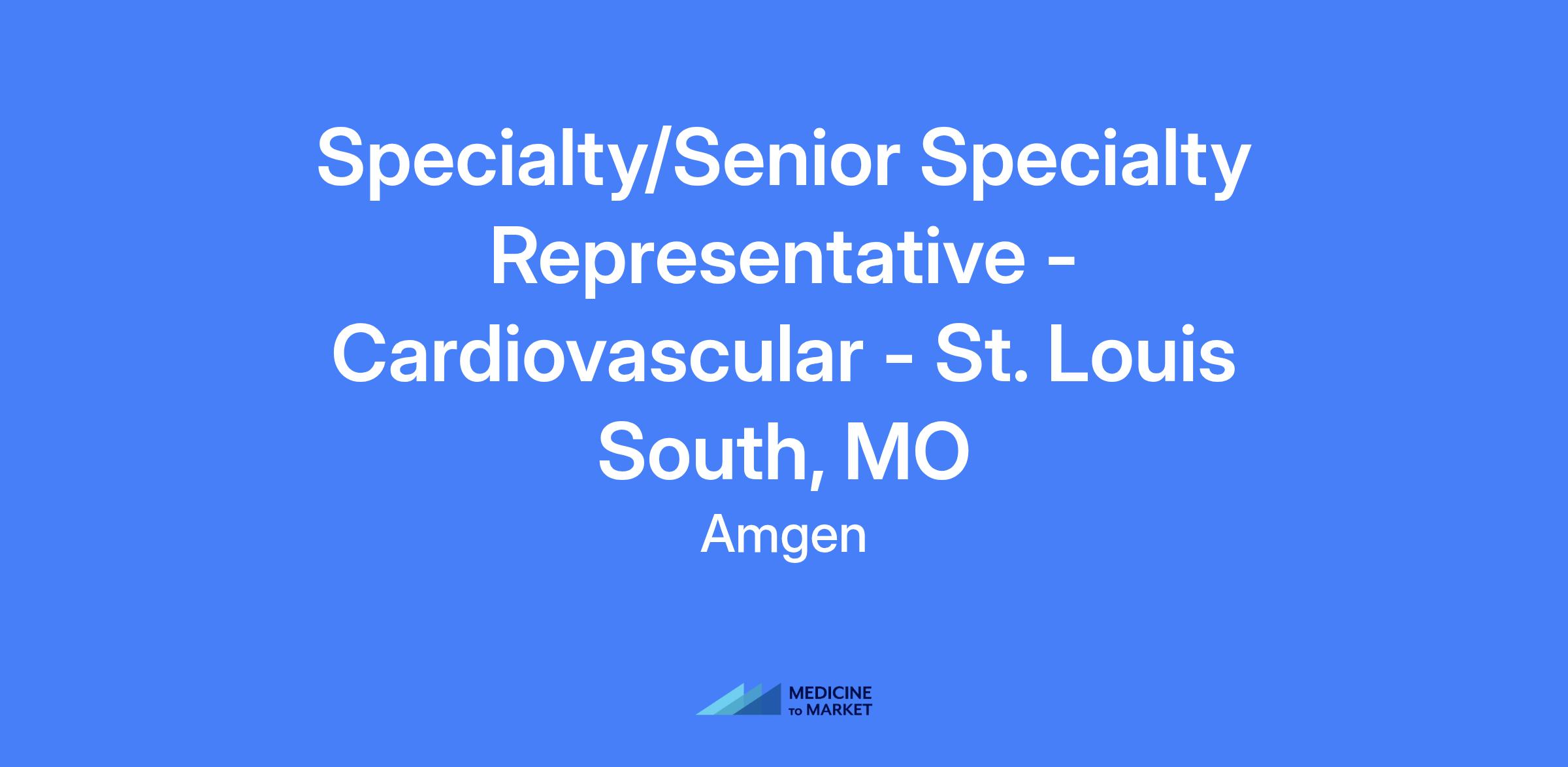 Specialty/Senior Specialty Representative for Cardiovascular in St. Louis South, MO. Territory includes St. Louis South area, Farmington, and Cape Girardeau. This role is focused on acting as the primary customer contact, delivering clinical knowledge of Amgen products, and promoting products as directed by the District Manager.