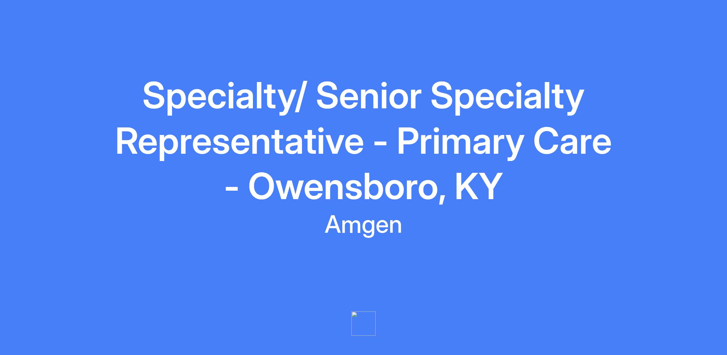 Specialty Representative or Senior Specialty Representative serving Owensboro, Madisonville, KY. Primary customer contact responsible for implementing marketing strategy and promoting Amgen products as directed by the District Manager. Provide clinical knowledge of products to medical professionals and assist them in navigating the payer environment.