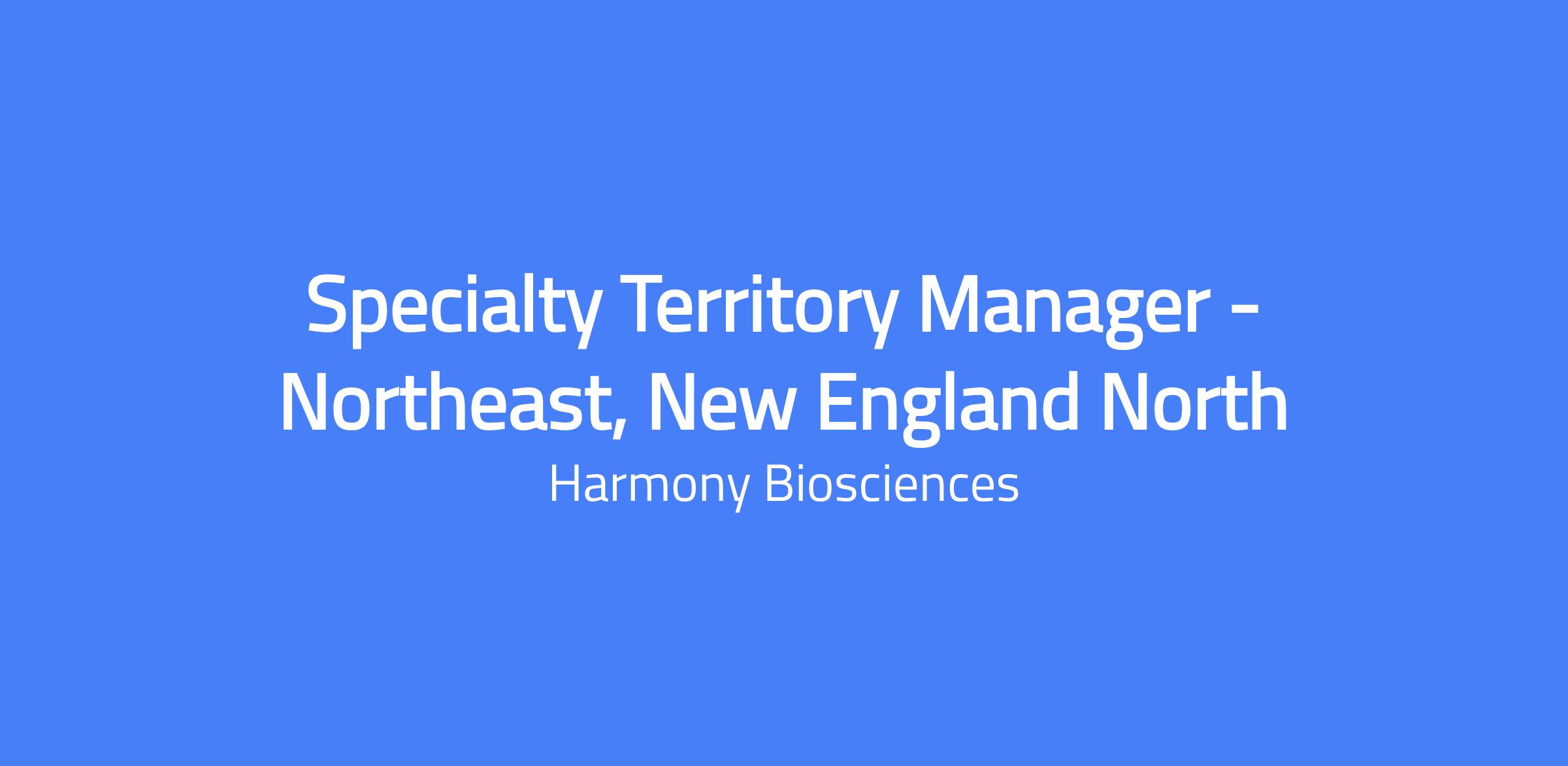 Harmony Biosciences is recruiting for a Specialty Territory Manager in the New England North territory. In this role you will strive to meet and exceed sales goals in your geography, champion scientific and clinical information of Harmony products to healthcare professionals and their staff, and serve as a clinical expert while maintaining professionalism, competency, and compliance.