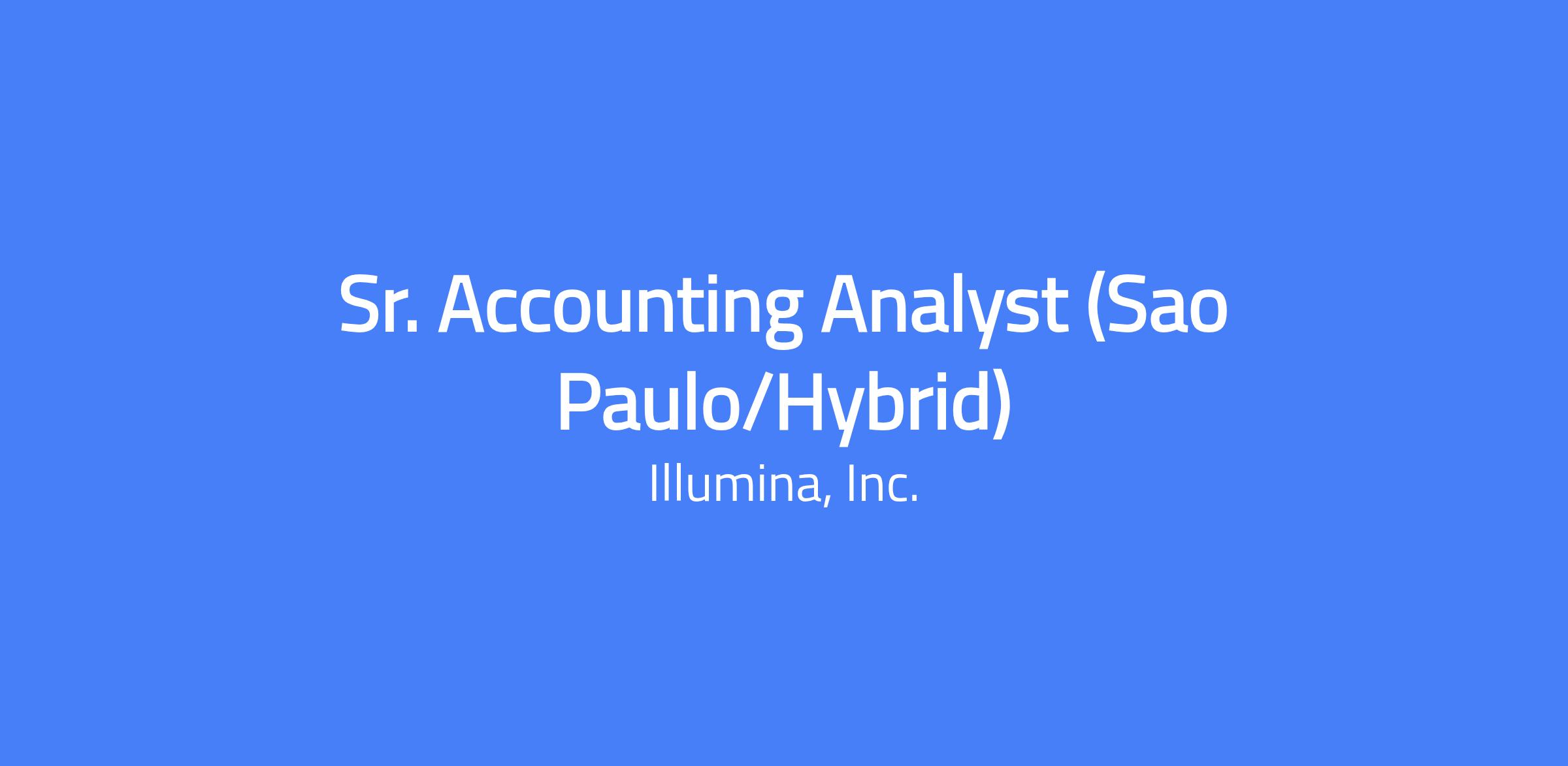 What if the work you did every day could impact the lives of people you know? Or all of humanity? At Illumina, we are expanding access to genomic technology to realize health equity for billions of people around the world. Our efforts enable life-changing discoveries that are transforming human health through the early detection and diagnosis of diseases and new treatment options for patients. Working at Illumina means being part of something bigger than yourself. Every person, in every role, has the opportunity to make a difference. Surrounded by extraordinary people, inspiring leaders, and world changing projects, you will do more and become more than you ever thought possible. Position Summary: Reporting to the Accounting Manager, AMR the Sr. Accounting Analyst will play an integral role on the corporate accounting team, performing general revenue accounting activities. The successful candidate will be able to work and communicate effectively in a team environment interacting with all levels of our organization, international team members, and external auditors. *This person must reside in Sao Paulo and commute 2 days/week to our corporate LATAM HQ. Please submit resume/CV in English. Responsibilities: Review customer contracts for the company to ensure appropriate accounting and billing treatment in accordance with company policies. Prepare and issue customer billing documents accurately and in a timely manner. Calculate monthly revenue deferral amortization and prepare related monthly revenue close journal entries. Partner with FP&A to support revenue deferral forecasting and projections throughout the quarterly reporting cycle. Collaborate with cross‑functional teams to integrate revenue and billing processes into Illumina’s standard operating framework. Perform ad hoc duties and special projects as required to support the role Participate in quarterly reviews and annual audit. Drive process improvement initiatives by applying strong analytical, communication, collaboration and problem-solving skills. Initiate and drive projects to enhance and automate internal controls over financial reporting (system enhancements, integrations, implementations, etc.,) All listed responsibilities are deemed essential functions to this position; however, business conditions may require reasonable accommodation for additional tasks and responsibilities. Requirements: Bachelor’s or higher degree in Accounting, Finance or related field Typically requires a minimum of 5 years of accounting and finance experience with a Bachelor’s degree; or 3 years and a Master’s degree; or a PhD without experience; or equivalent work experience. Knowledge of US GAAP Knowledge of the Sarbanes-Oxley Act of 2002 Must be able to conduct business in English (Spanish a plus) Proficiency in Microsoft Office applications especially Microsoft Excel Preferred Qualifications: CPA or local equivalent and/or Big 4/Regional Public Accounting experience preferred Life science and manufacturing industries accounting experience a plus Prior experience in SAP and BlackLine experience a plus Key Competencies/Skills: Ability to exercise judgement within defined procedures and policies to determine appropriate action Ability to execute assignments in the form of objectives with goals Applies expertise to set direction and resolve problems in own discipline Ability to identify and resolve technical, operational and organizational problems Ability to work cooperatively and collaboratively with all levels of employees, management and external agencies Highly detail oriented and organized in work Ability to be flexible and work analytically in a problem-solving environment Excellent communication (written and oral) and interpersonal skills Proven track record in driving projects and process improvement initiatives #LI-HYBRID We are a company deeply rooted in belonging, promoting an inclusive environment where employees feel valued and empowered to contribute to our mission. Built on a strong foundation, Illumina has always prioritized openness, collaboration, and seeking alternative perspectives to propel innovation in genomics. We are proud to confirm a zero-net gap in pay, regardless of gender, ethnicity, or race. We also have several Employee Resource Groups (ERG) that deliver career development experiences, increase cultural awareness, and offer opportunities to engage in social responsibility. We are proud to be an equal opportunity employer committed to providing employment opportunity regardless of sex, race, creed, color, gender, religion, marital status, domestic partner status, age, national origin or ancestry, physical or mental disability, medical condition, sexual orientation, pregnancy, military or veteran status, citizenship status, and genetic information. Illumina conducts background checks on applicants for whom a conditional offer of employment has been made. Qualified applicants with arrest or conviction records will be considered for employment in accordance with applicable local, state, and federal laws. Background check results may potentially result in the withdrawal of a conditional offer of employment. The background check process and any decisions made as a result shall be made in accordance with all applicable local, state, and federal laws. Illumina prohibits the use of generative artificial intelligence (AI) in the application and interview process. If you require accommodation to complete the application or interview process, please contact accommodations@illumina.com. To learn more, visit: https://www.dol.gov/ofccp/regs/compliance/posters/pdf/eeopost.pdf. The position will be posted until a final candidate is selected or the requisition has a sufficient number of qualified applicants. This role is not eligible for visa sponsorship. The potential of genomics to change the world is unparalleled. At Illumina, we are leading the way. Our technology empowers researchers and clinicians globally to improve c