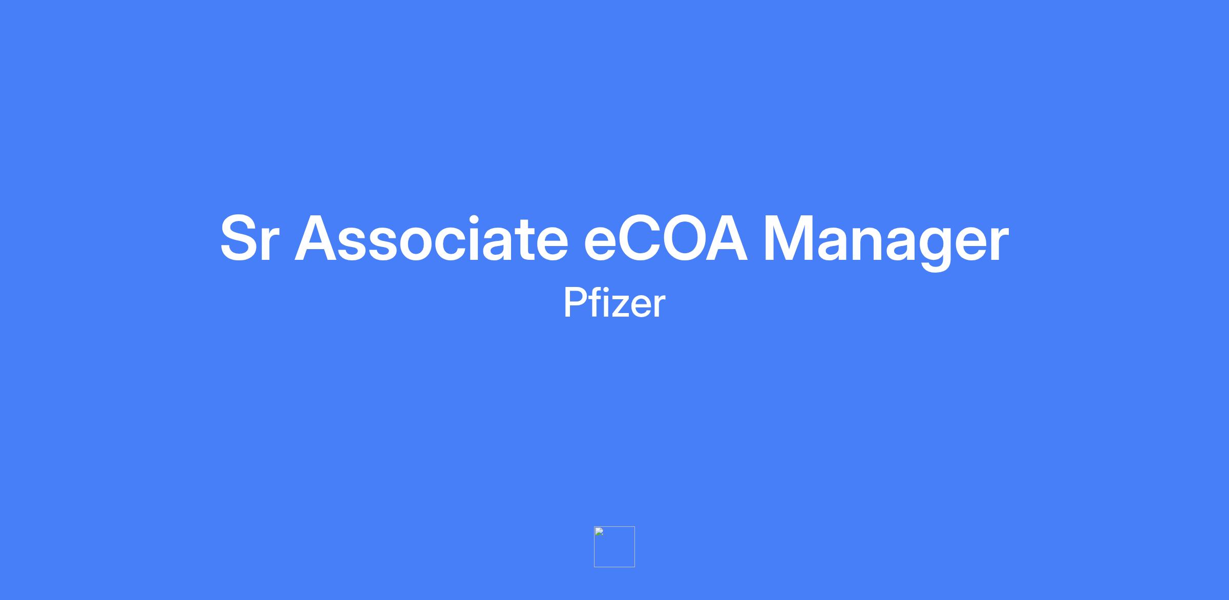 Sr Associate eCOA Manager — The role supports the implementation and management of Electronic Clinical Outcome Assessment (eCOA) and related patient technologies within Pfizer Research & Development. The position is part of the Patient Data Strategies (PDS) team, enabling study teams to implement eCOA in clinical studies efficiently, with high quality and low regulatory risk. The candidate will work autonomously on assigned items and collaborate with a cross-functional team, with a focus on technologies allied to eCOA.