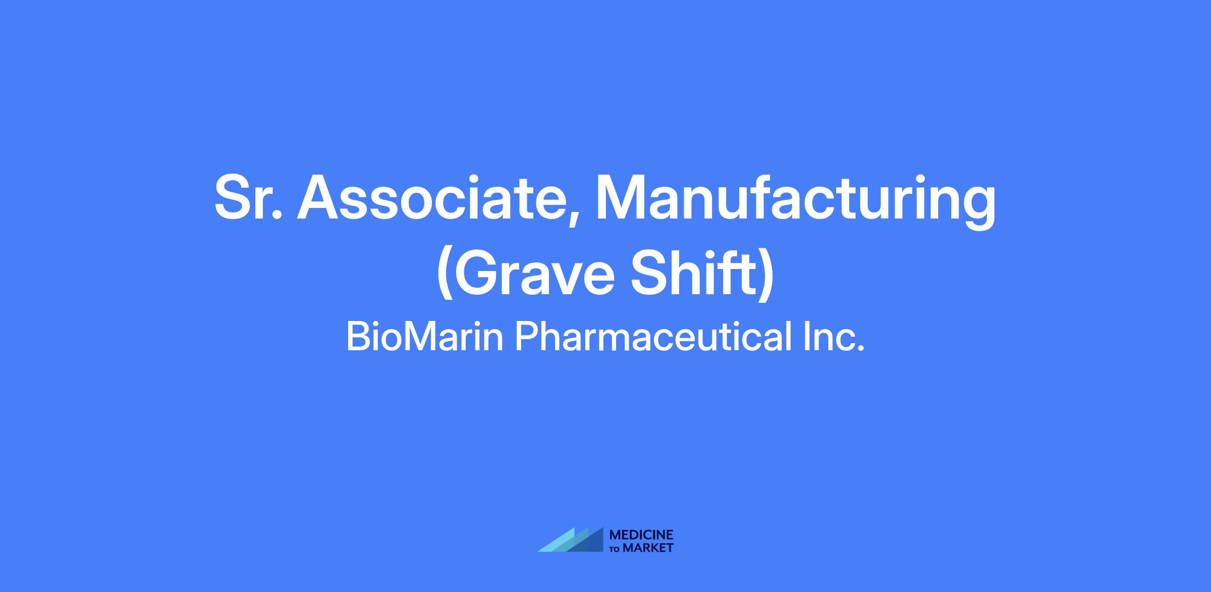 Sr. Associate, Manufacturing (Grave Shift) responsible for shift-based operations supporting large-scale solutions (buffers and media), material inventory, and process equipment in Upstream or Downstream areas, ensuring compliance with cGMP, SOPs, licenses, and safety practices. Requires shift work including weekends, off hours, and holidays.