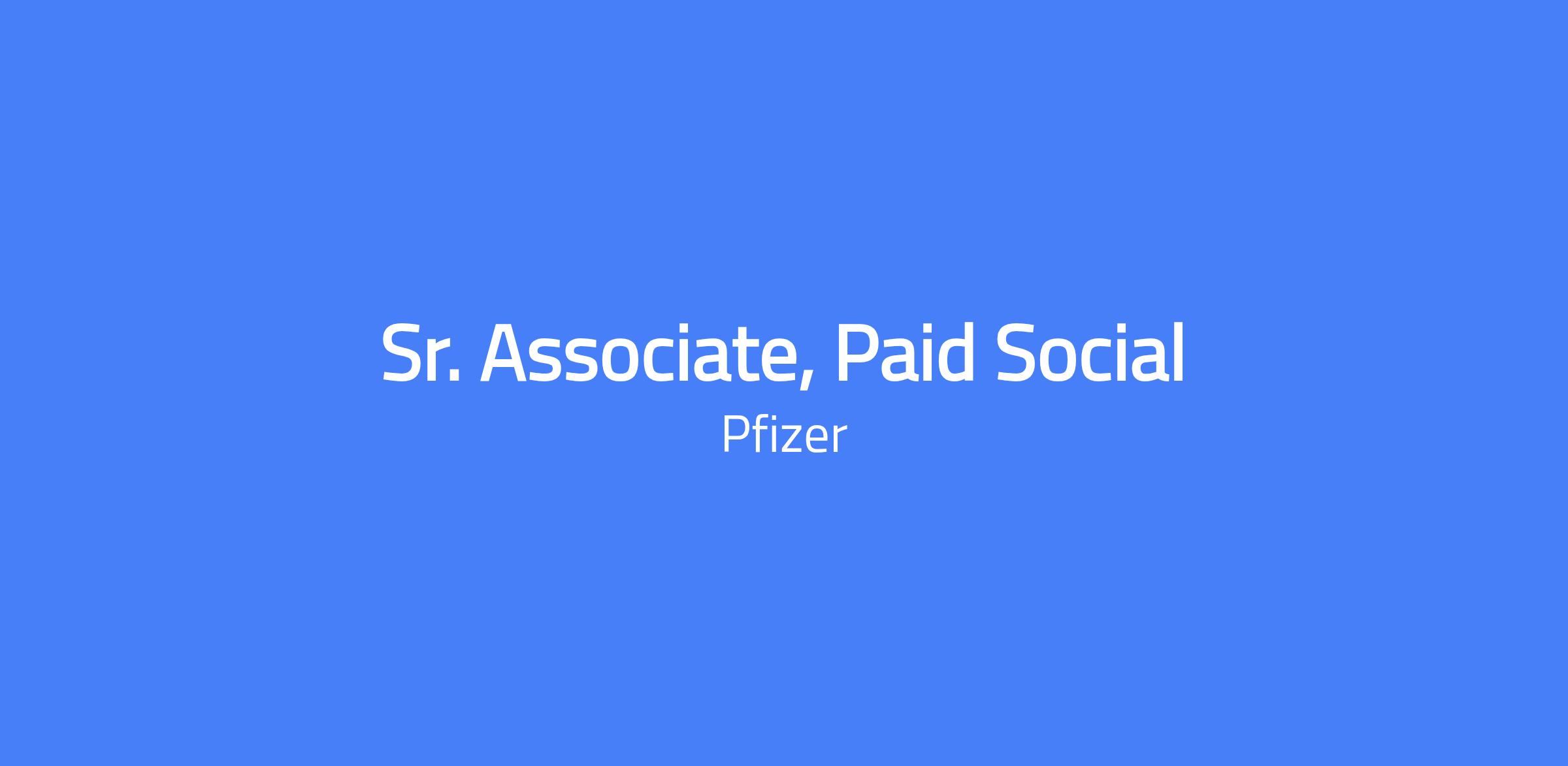 As part of the Chief Marketing Organization the Sr. Associate, Paid Social will be part of the Performance Marketing team. This individual will play a critical role driving the successful execution of Pfizerβs social media campaigns. The role is designed for individuals who have already mastered the basic principles of paid social media and are ready for increased responsibility when it comes to campaign creation and performance. The Sr. Associate will be part of our newly created In-House team, which leads social media from strategy to implementation. The ideal candidate will act as the day-to-day steward of activation activities with a proven track record in hands-on management and optimization.