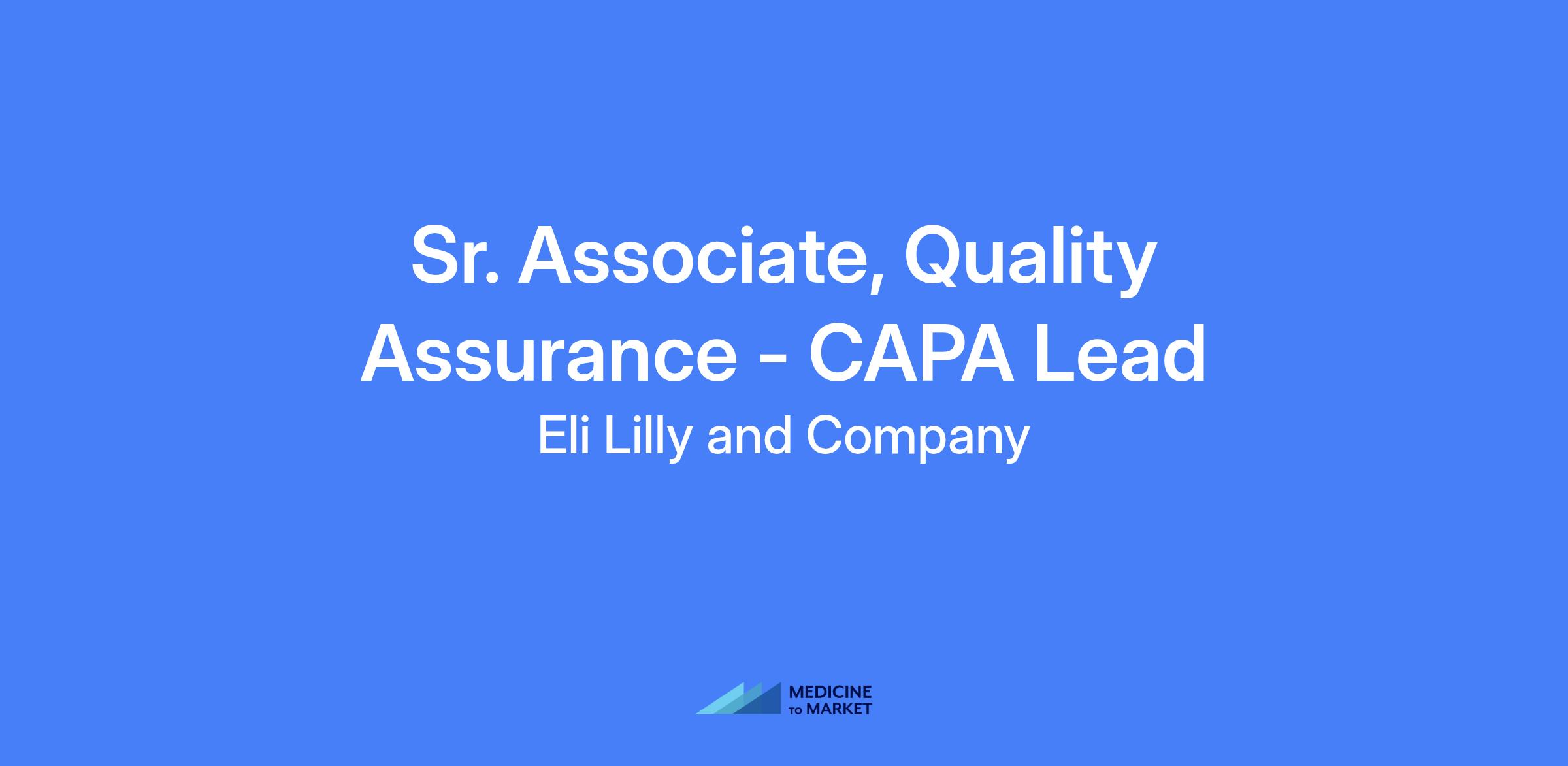 Sr. Associate, Quality Assurance - CAPA Lead at Lilly. Oversees the site Deviation and CAPA program as part of the Quality Management System to ensure safe and effective products, regulatory compliance, and inspection readiness. Leads CAPA activities, drives product and process improvement, and mentors cross-functional teams.