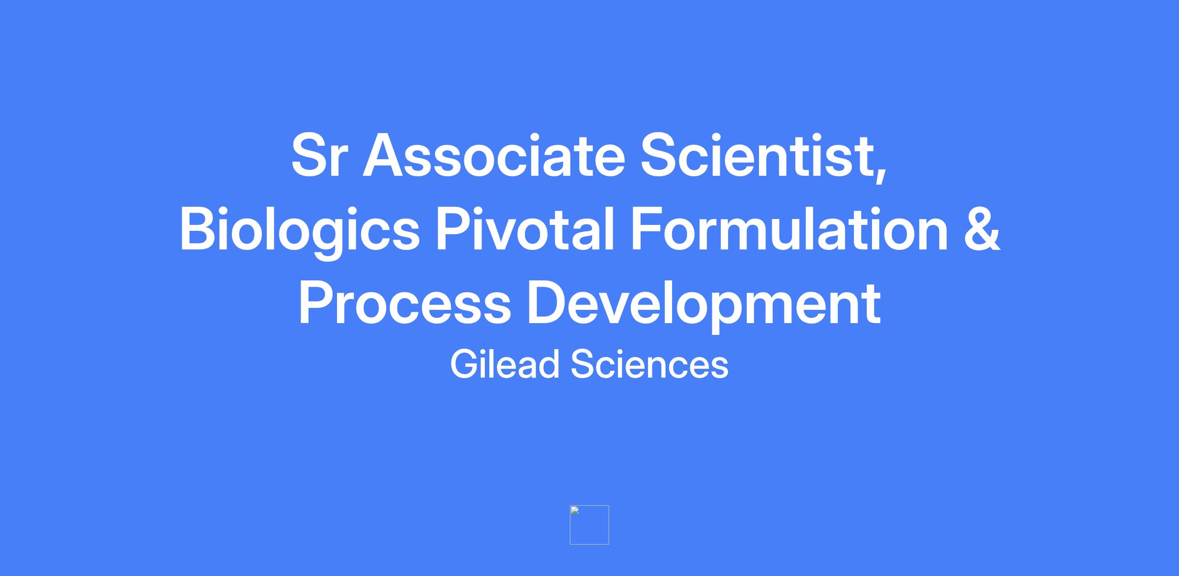Senior Associate Scientist in Biologics Pivotal Formulation and Process Development at Gilead. Lead and contribute in the development of formulation and drug product processes for innovative molecules to advance medicine into the clinic. The role requires strong collaboration, communication, and a proactive, results-oriented approach in a fast-paced environment.