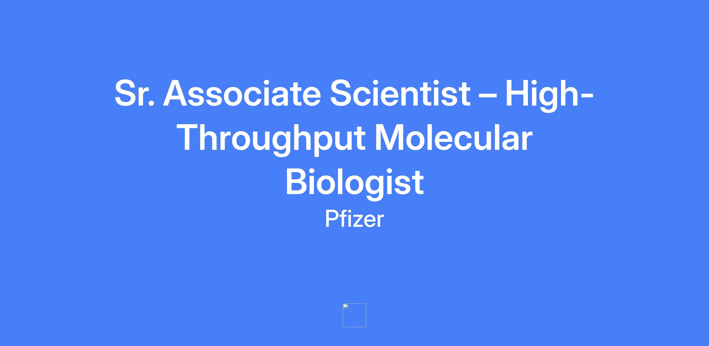 Sr. Associate Scientist β High-Throughput Molecular Biologist at Pfizer. Focus on design, cloning and validation of vaccine construct candidates within the Seasonal Strain Change Vaccines program; collaborate across Pfizer Vaccines to accelerate development of vaccine programs.