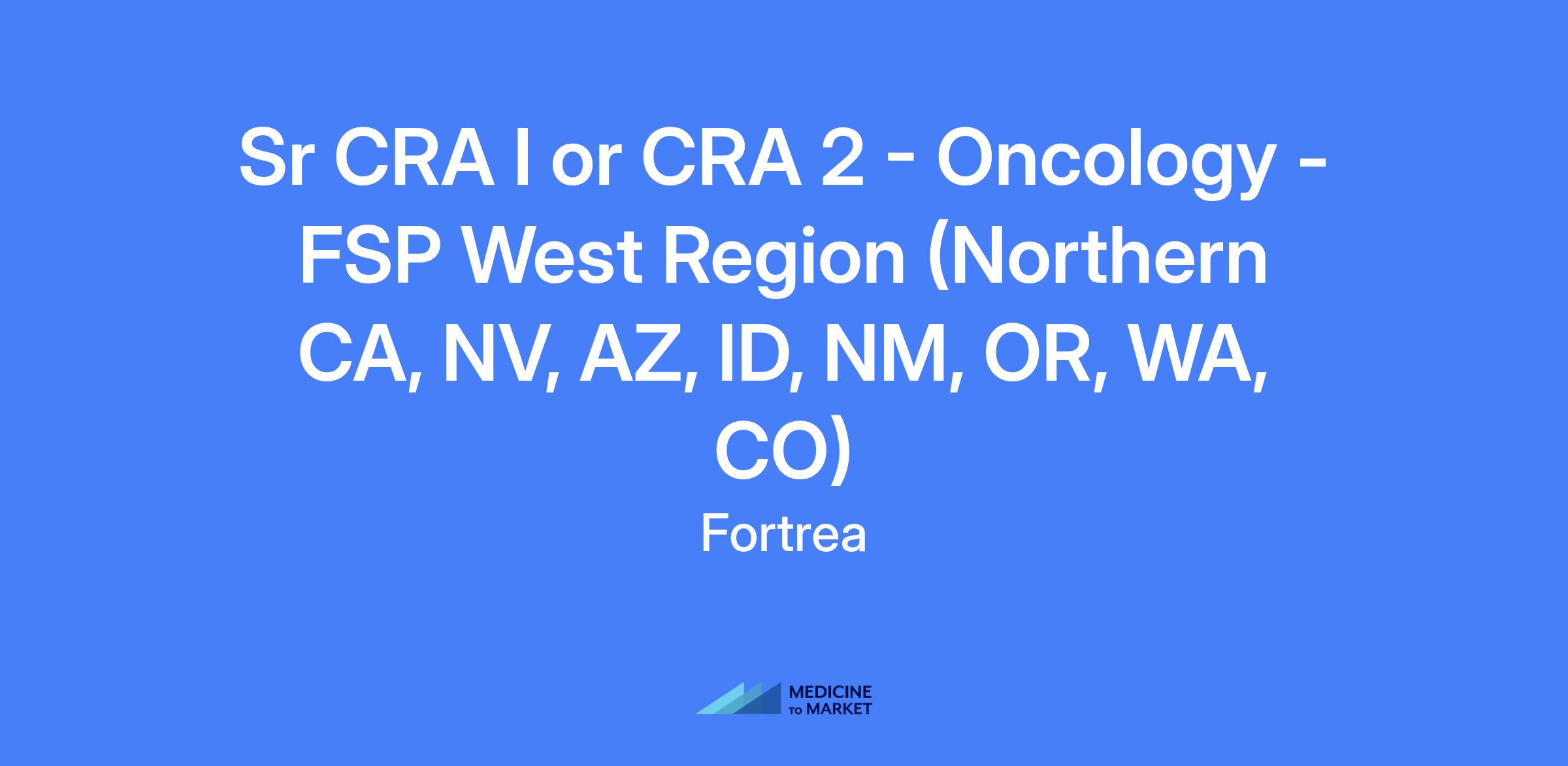 Sr CRA I or CRA 2 - Oncology - FSP West Region (Northern CA, NV, AZ, ID, NM, OR, WA, CO)