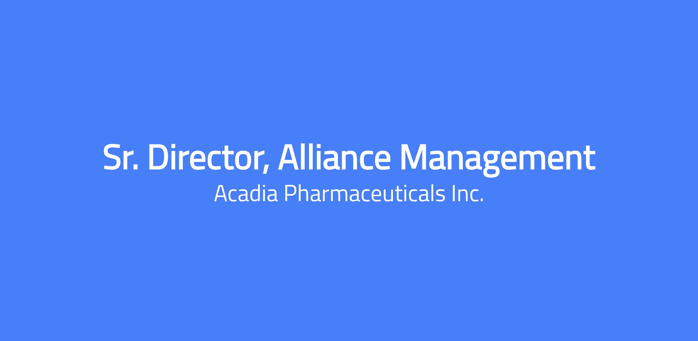 The Senior Director, Alliance Management leads strategic collaborations to ensure Acadia has access to a pipeline of targets, assets, translational capabilities, and technologies, aligning alliance activities with the company’s business strategy. They establish and oversee partnership and integration management, coordinate internal and external communication, monitor milestones, and guide governance structures across a diverse alliance portfolio. The role requires strong communication, cross-cultural influence, and contractual understanding, with accountability for risk management and partner satisfaction. This position can be based in Princeton, NJ or San Diego, CA and requires a hybrid schedule of three days in the office on average.