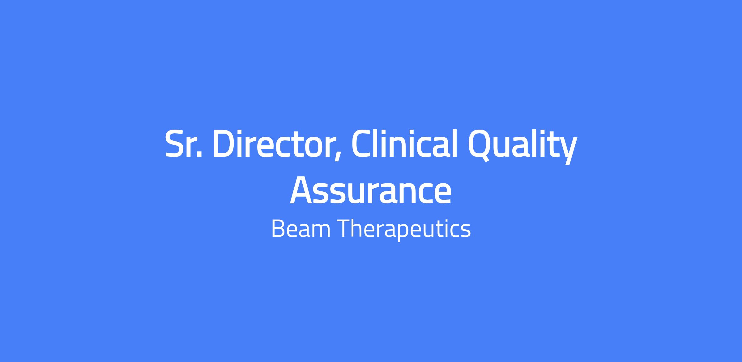 The Sr. Director, Clinical Quality Assurance will act as a leader in the Quality organization and will be responsible for the quality oversight for Beam’s clinical trials and overall GCP (Good Clinical Practice). The position will be critical to the overall strategy and growth of the Quality organization for Beam as the company grows and evolves from Development to a Commercial organization in preparation for licensure. Reporting to the VP, Compliance, the position will be a key liaison with the Clinical Operations team, Clinical Development, Medical and Safety teams, programs teams, regulatory, and others back to the Quality organization. The position will take a leadership role responsible for developing and overseeing a company's global clinical quality assurance strategy to ensure compliance with regulations like Good Clinical Practice (GCP). Key duties include managing audits and inspections, implementing quality management systems, reviewing study documentation, and leading a high-performing team.