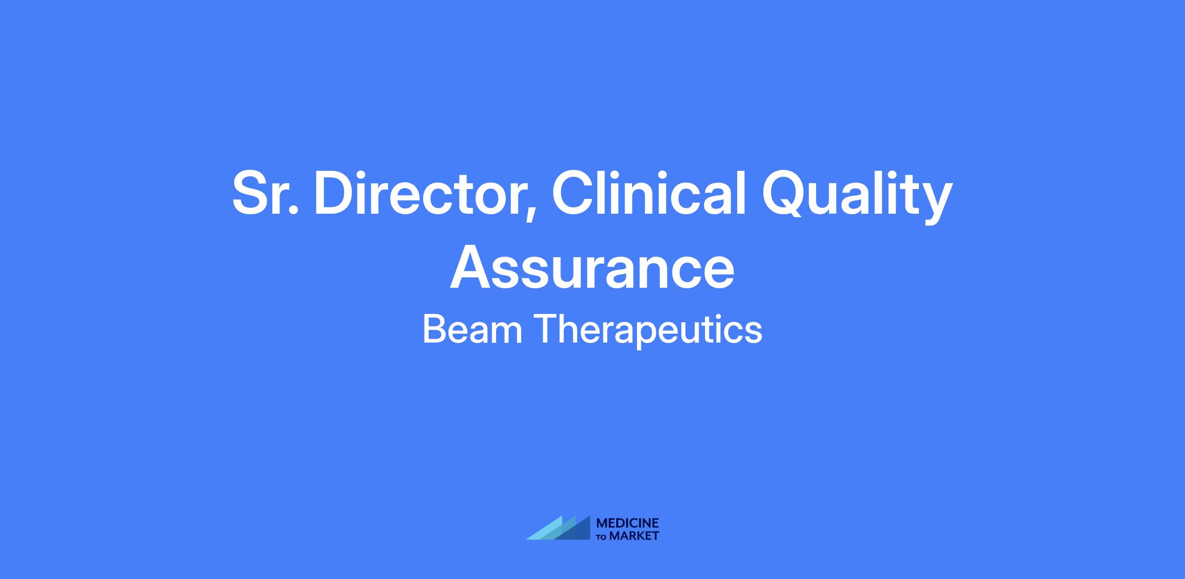Sr. Director, Clinical Quality Assurance responsible for quality oversight of Beam’s clinical trials and overall GCP compliance, leading a global clinical quality assurance strategy and a high-performing team.