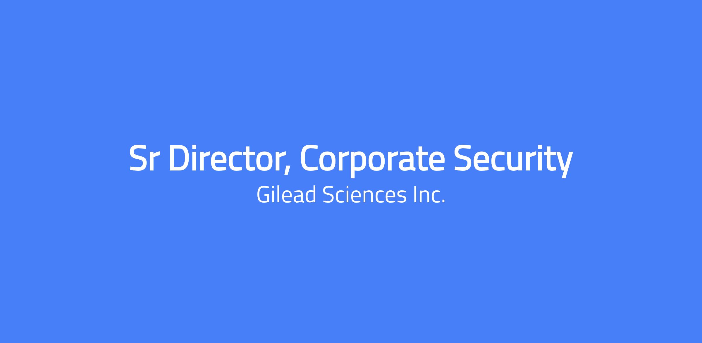 At Gilead, weâre creating a healthier world for all people. For more than 35 years, weâve tackled diseases such as HIV, viral hepatitis, COVID-19 and cancer â working relentlessly to develop therapies that help improve lives and to ensure access to these therapies across the globe. We continue to fight against the worldâs biggest health challenges, and our mission requires collaboration, determination and a relentless drive to make a difference. Every member of Gileadâs team plays a critical role in the discovery and development of life-changing scientific innovations. Our employees are our greatest asset as we work to achieve our bold ambitions, and weâre looking for the next wave of passionate and ambitious people ready to make a direct impact. We believe every employee deserves a great leader. People Leaders are the cornerstone to the employee experience at Gilead and Kite. As a people leader now or in the future, you are the key driver in evolving our culture and creating an environment where every employee feels included, developed and empowered to fulfil their aspirations. Join Gilead and help create possible, together. Job Description The Senior Director, Corporate Security is responsible for defining, leading, and continuously evolving Gileadâs global corporate security strategy, operating model, and performance outcomes. This role owns the delivery of security operations across a complex, highly regulated global footprint, ensuring the protection of employees, facilities, physical assets, and critical business operations. Reporting to the Vice President, Corporate Operations within the CFO organization, this role serves as both a strategic advisor and operational leader, providing executiveâlevel guidance during routine operations, periods of transformation, and highâconsequence crisis events. The role leads a globally distributed team and oversees integration of security capabilities across physical, technical, investigative, intelligence, and operational domains. The Senior Director will partner closely with Legal, IT, HR, Facilities, Compliance, Manufacturing, R&D, Finance, and executive leadership to align security strategies with enterprise objectives, regulatory expectations, employee safety, and business continuity requirements. In addition, the role will drive the modernization of the corporate security program through technology enablement, intelligenceâled approaches, dataâdriven decisionâmaking, and continuous improvement, ensuring the function scales to meet evolving risk and business needs. Core Responsibilities: Global Corporate Security Leadership & Operations Own global delivery of corporate security operations globally, providing strategic direction and operational oversight to protect employees, facilities, physical assets, and business continuity. Ensure consistent global standards, governance, and operational execution, while addressing regional risk, regulatory, and business requirements. Integrate physical, technical, investigative, intelligence, and operational security capabilities to anticipate emerging threats and drive proactive, enterpriseâwide risk mitigation. Develop measurable performance metrics, conduct regular risk assessments, and lead continuous operational improvement initiatives. Organizational Development Build and sustain a highâperforming global security organization focused on accountability, capability building, and continuous development. Lead organizational design, talent planning, and change management efforts to ensure the security organization evolves in alignment with corporate growth, transformation initiatives, and an evolving risk landscape. Crisis Leadership & Executive DecisionâMaking Serve as a trusted advisor to executive leadership during highâpressure, timeâcritical situations such as major incidents, crises, and highâconsequence security events Own global emergency preparedness, crisis management, and incident response programs, including coordination with executive stakeholders, GSOC and intelligence capabilities, and external agencies such as law enforcement and regulators. Deliver clear, timely, and actionable risk assessments and recommendations to enable informed executive decisionâmaking and ensure continuity of enterprise operations. Leadership and Collaboration Influence senior leaders across Legal, IT, HR, Compliance, Facilities, Manufacturing, R&D, and Finance to embed security considerations into enterprise programs while aligning with business objectives. Own global vendor strategy, thirdâparty security provider governance, and contract management to deliver scalable, costâeffective, and highâquality security services. Maintain strong partnerships with external stakeholders, including law enforcement, intelligence networks, and regulatory bodies, to support investigations, incident response, and regulatory engagement. Minimum Required Education and Years of Experience Bachelor's Degree and Fourteen Yearsâ Experience; OR Masters' Degree and Twelve Yearsâ Experience; OR PhD and Twelve Yearsâ Experience Qualifications Bachelorâs degree with 14+ years of progressive experience in corporate, government, military, or law enforcement security roles, with significant leadership responsibility; Masterâs degree preferred. Demonstrated success leading enterpriseâscale security operations globally, with accountability for risk outcomes, operational performance, and global consistency. Experience providing executiveâlevel counsel and decision support during crises, major incidents, and sensitive investigations in highâpressure, ambiguous environments. Experience modernizing security programs through technology enablement, intelligenceâled approaches, dataâdriven decision making, and continuous improvement. Demonstrated financial acumen, including management of significant global budgets and thirdâparty security providers at scale. Strong executive communication skills with the ability to i