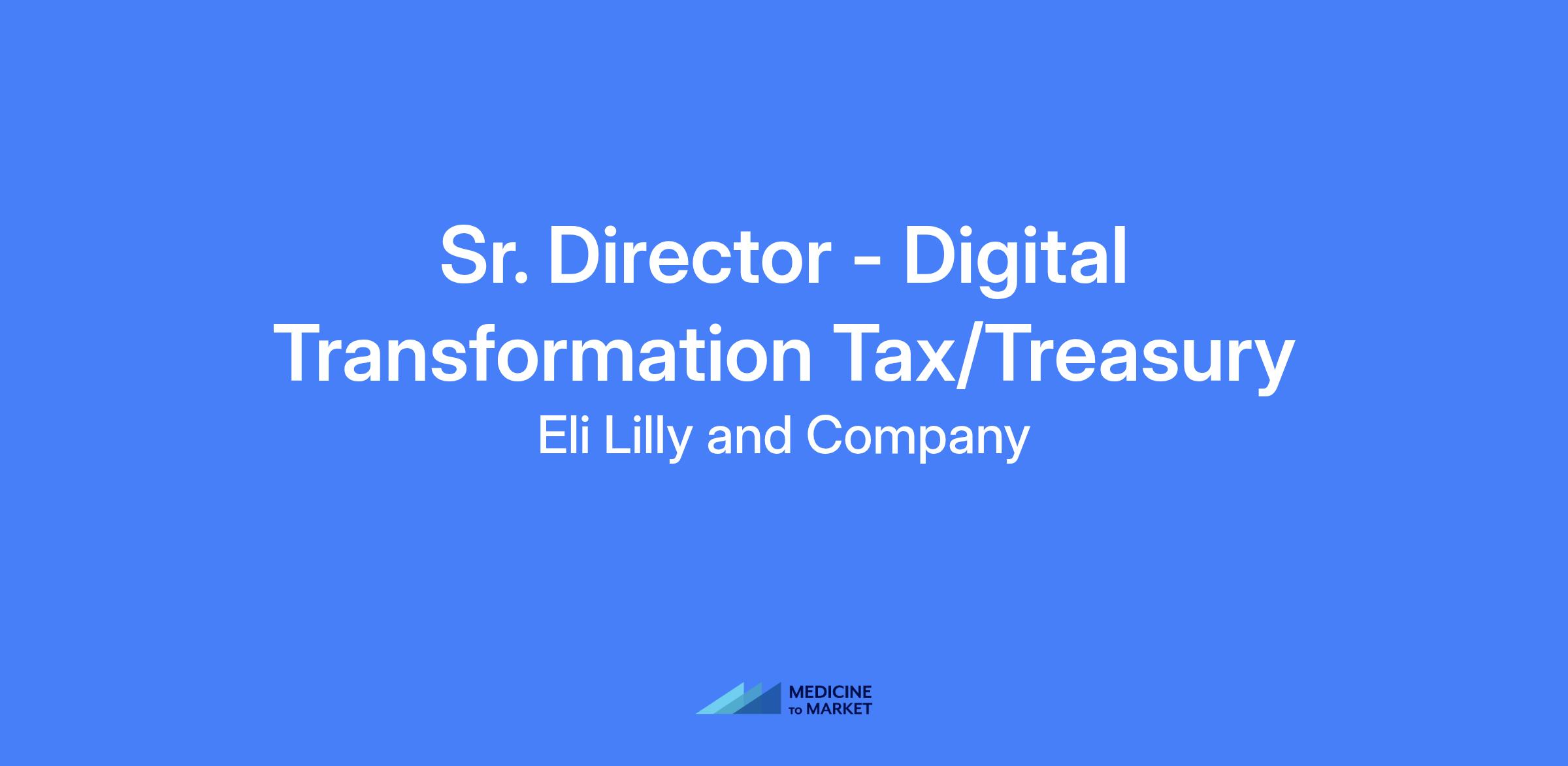 Sr Director Digital Transformation Tax/Treasury at Lilly. The role leads modernization of global tax and treasury functions, bridging technology with finance to drive digital transformation, automation, AI-driven forecasting, and intelligent workflows. It supports global, federal, state tax, global treasury, pension and benefits management, insurance and risk management, and business development financial support, with upward exposure to senior finance leaders.