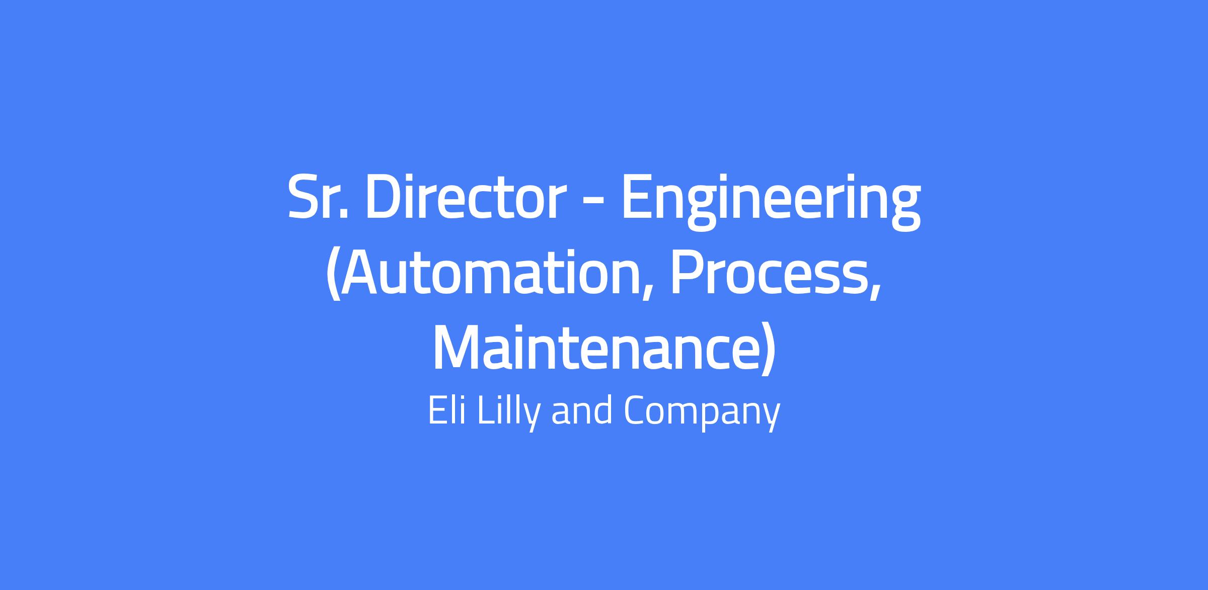 Sr. Director - Engineering (Automation, Process, Maintenance) at Lilly's Goochland County, Virginia manufacturing site. Lead the site’s process-facing engineering functions—including process engineering, automation, and maintenance—to ensure startup readiness and long-term manufacturing goals. Provide administrative and technical leadership for engineering operations as a member of the Site Lead Team shaping strategic direction and capability.