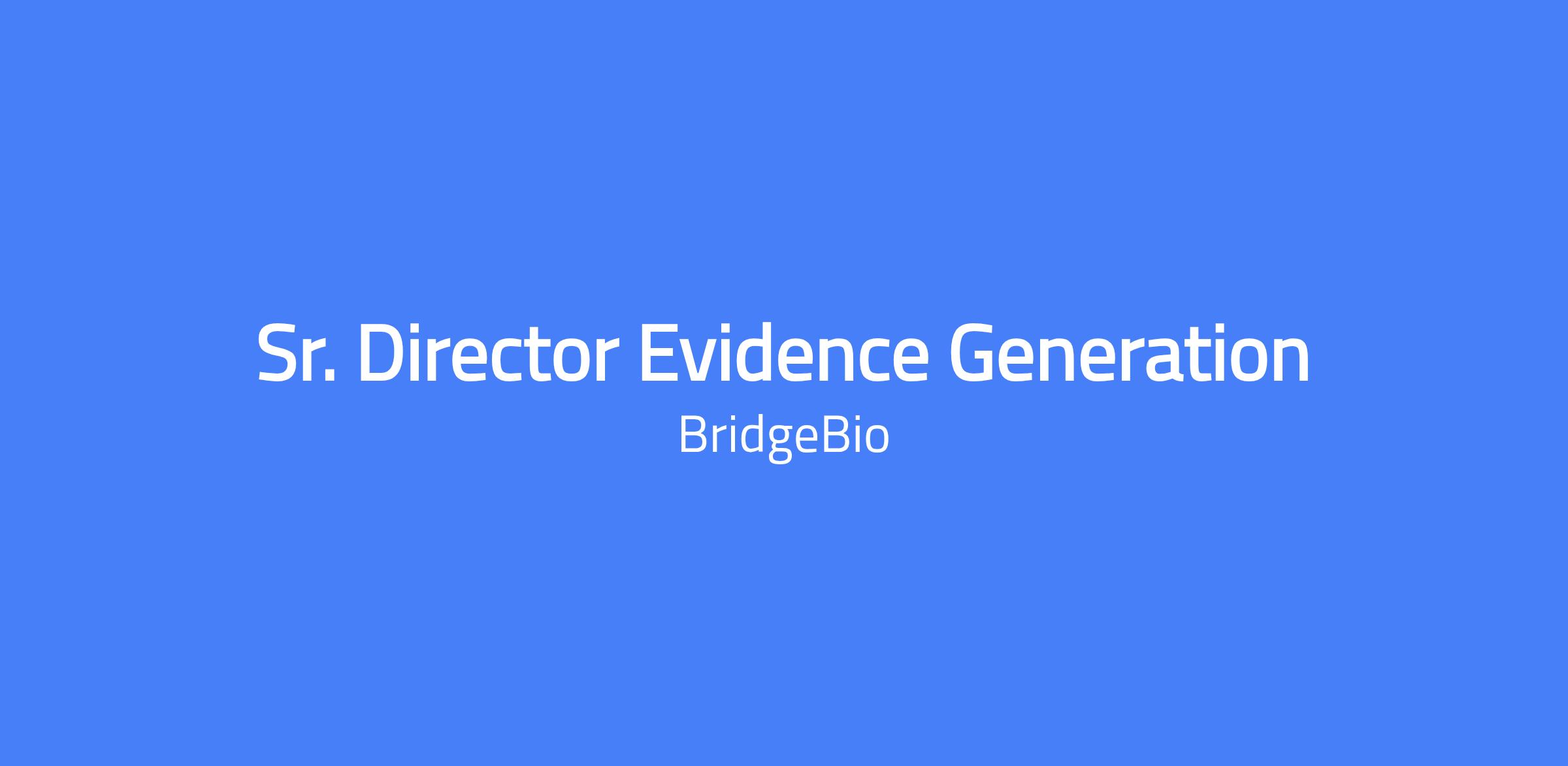 Senior Director, Evidence Generation, Skeletal Dysplasia is a senior medical leadership role within BridgeBio's Medical Affairs. The role is responsible for developing and executing the integrated evidence generation strategy across BridgeBioโs skeletal dysplasia programs. The role leads the design and implementation of real-world evidence (RWE), HEOR, Phase 4, registry, and investigator-sponsored research strategies to support clinical development, regulatory objectives, value demonstration, and lifecycle management. Reporting to the CMAO, Skeletal and Endocrinology, this position shapes the evidence strategy to support launch readiness and post-marketing commitments, while ensuring alignment across Clinical Development, Regulatory, Commercial, Market Access, and Field Medical. It requires deep expertise in rare disease evidence generation, scientific rigor, and cross-functional leadership in a matrixed organization. Location: remote or hybrid/on-site in San Francisco.