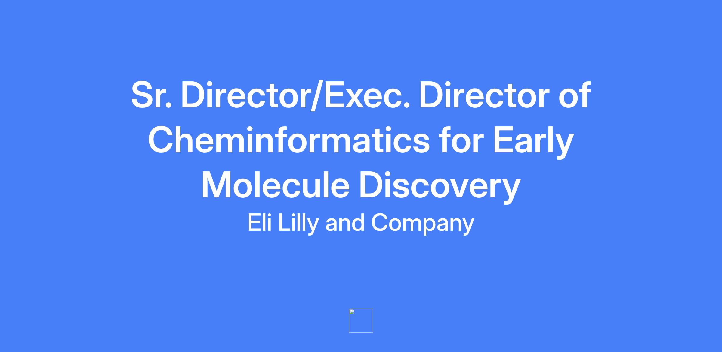 Sr. Director/Executive Director of Cheminformatics for Early Molecule Discovery at Lilly. Lead from the bench to apply cheminformatics and AI/ML strategies to drive early hit-to-lead efforts, library design, and cross-functional collaboration across multiple projects in a fast-paced, collaborative environment.