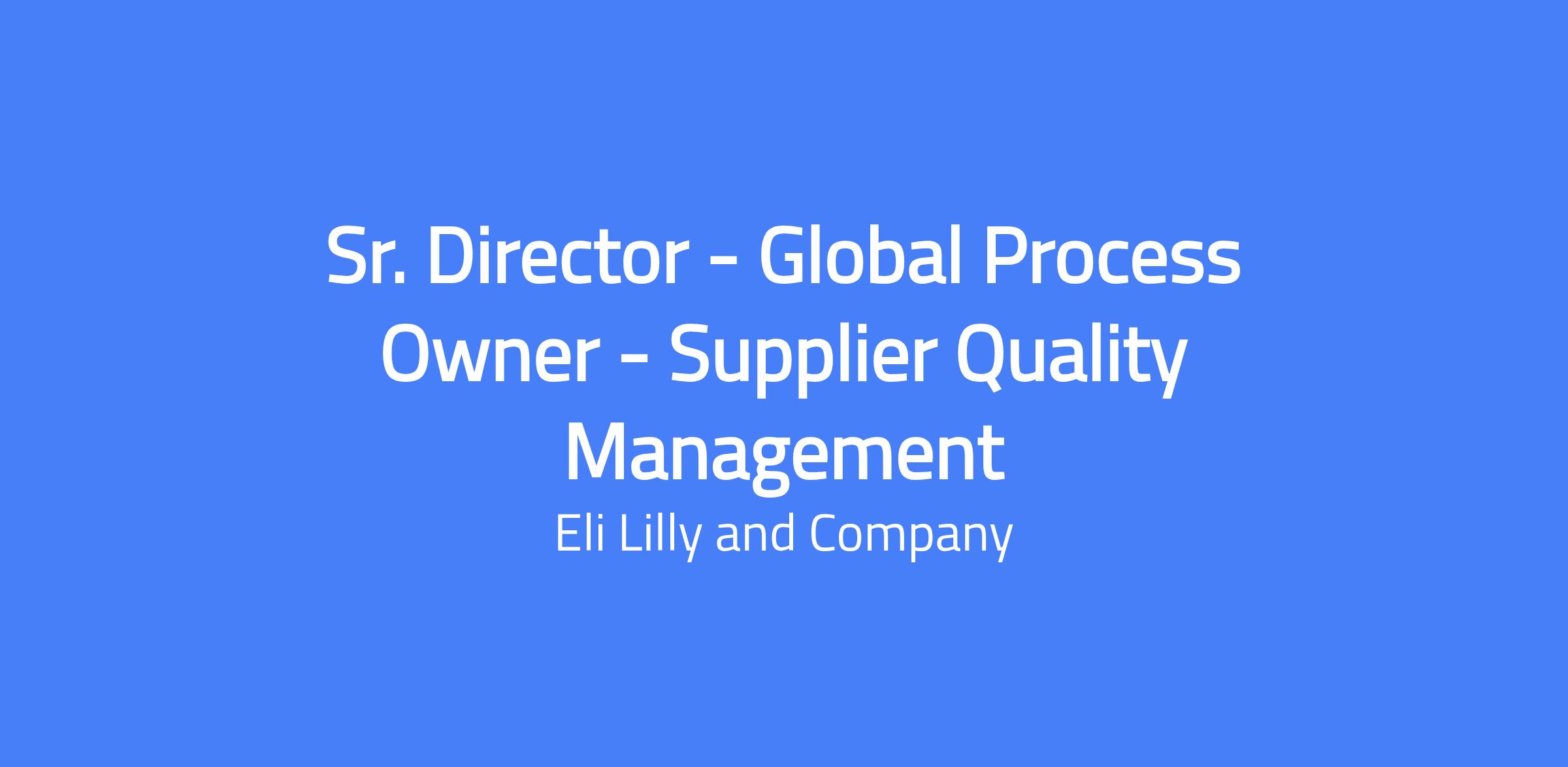 Sr. Director, Global Process Owner for Supplier Quality Management. Leads the global quality system for supplier (third party) quality management, providing strategic oversight of standards, processes, practices, trainings, and tools. Collaborates across functions to ensure compliance with regulatory expectations and drives global standardization and continuous improvement.