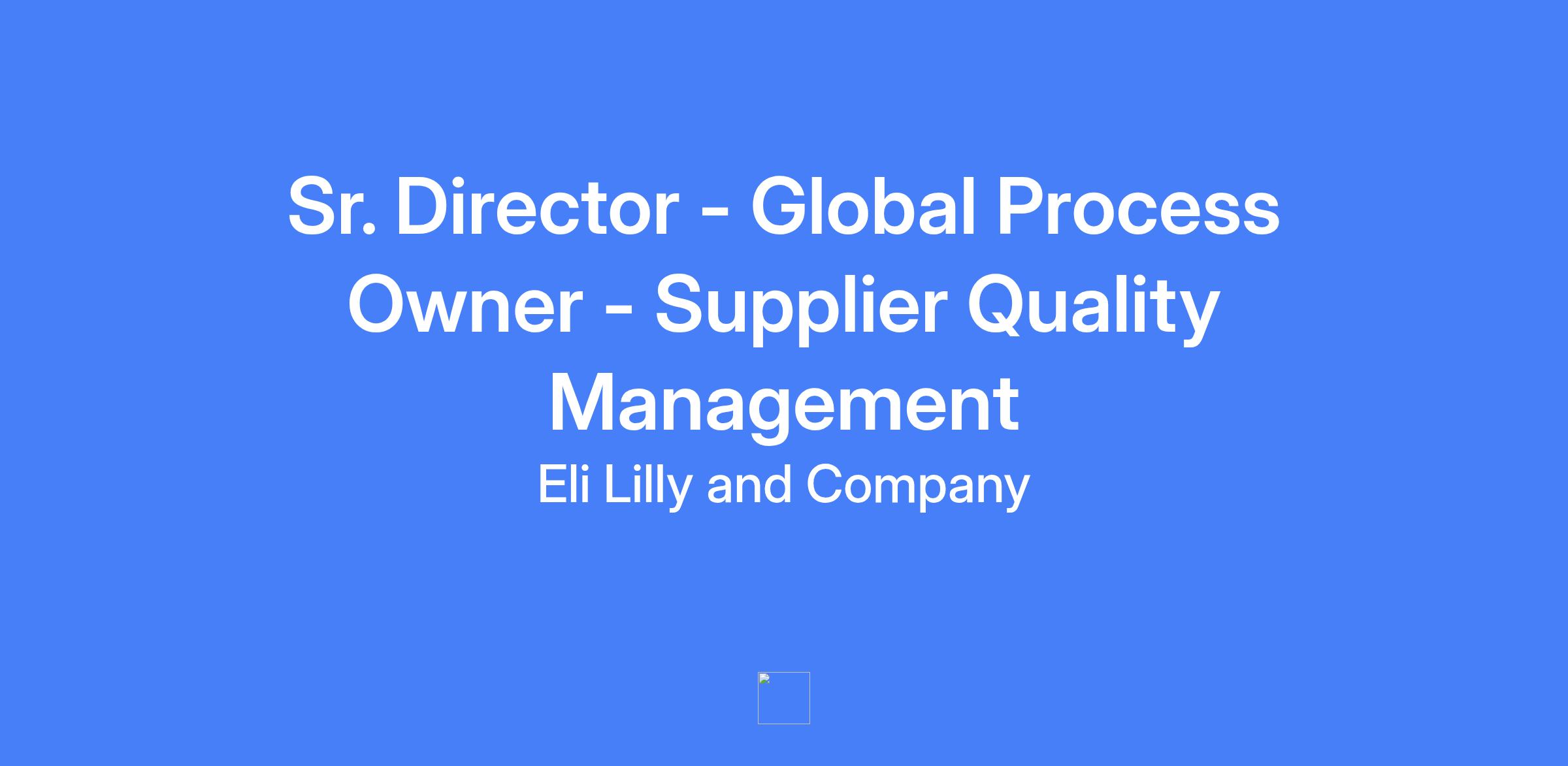 Sr. Director - Global Process Owner - Supplier Quality Management