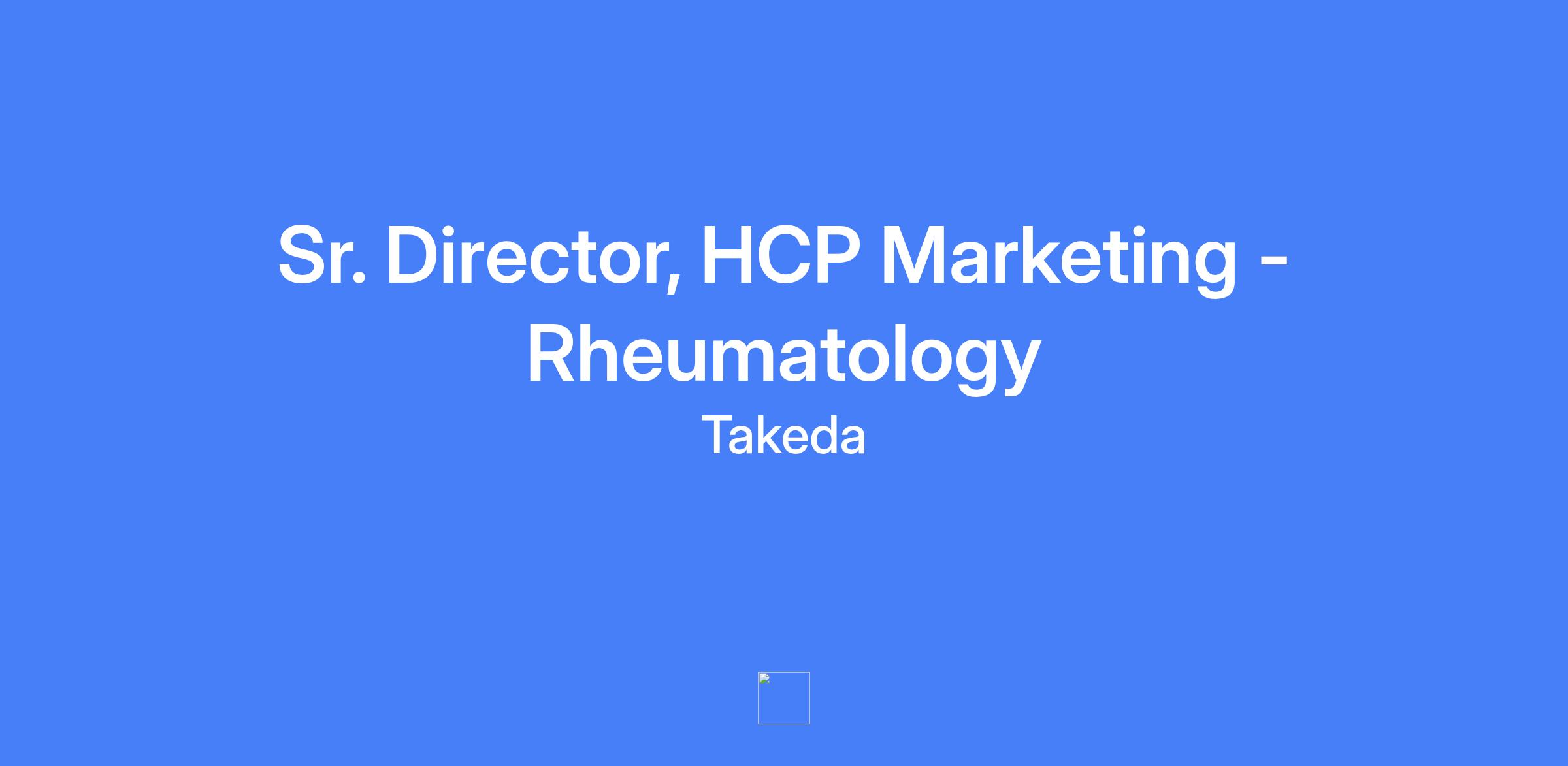 Senior Director of HCP Marketing - Rheumatology at Takeda, Cambridge, MA. Lead the overall strategic direction and performance management for a new product launch, collaborating with cross-functional teams and executive leadership to develop and execute strategies for maximum success.