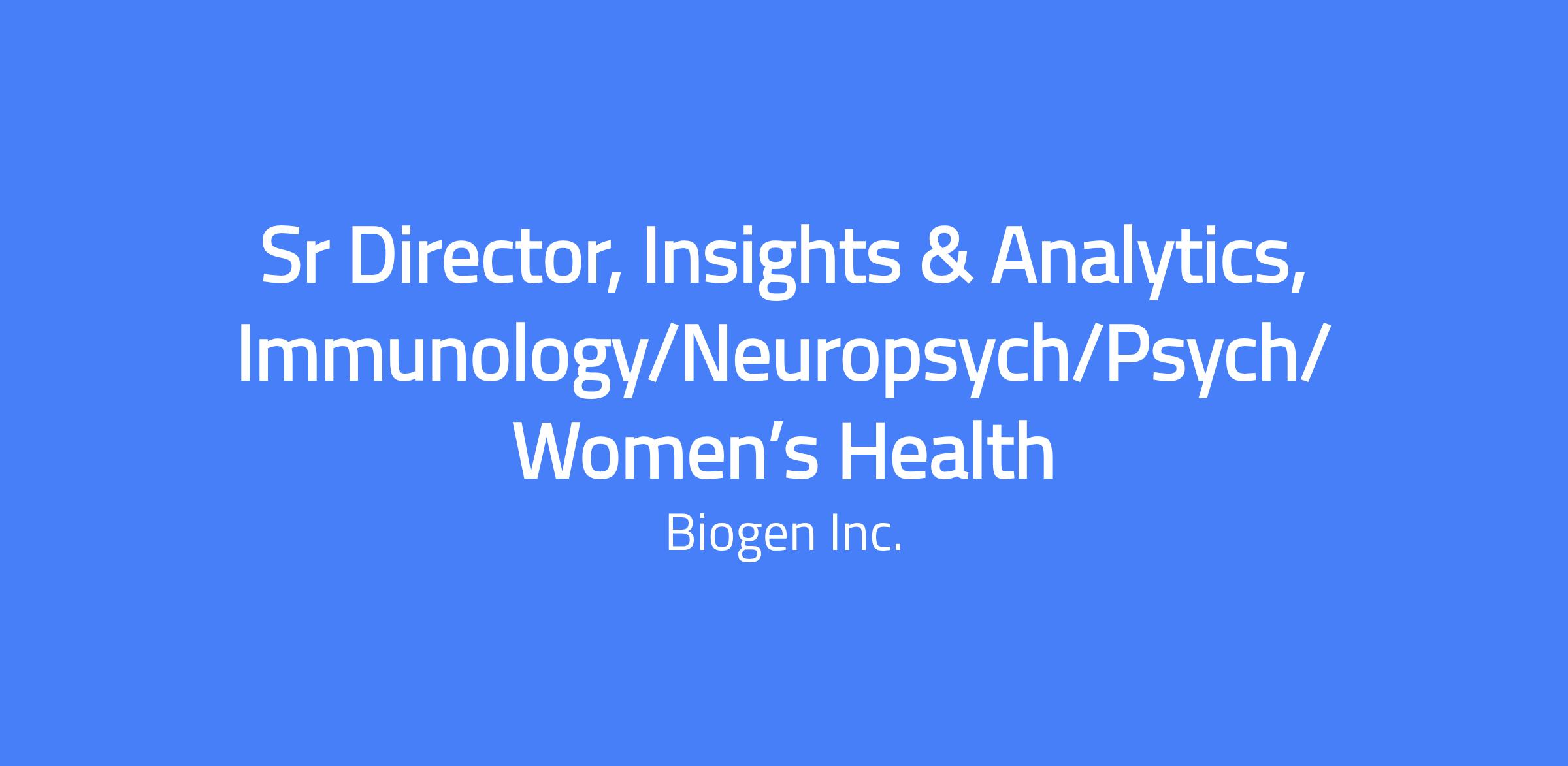 Sr Director, Insights & Analytics, Immunology/Neuropsych/Psych/Women’s Health