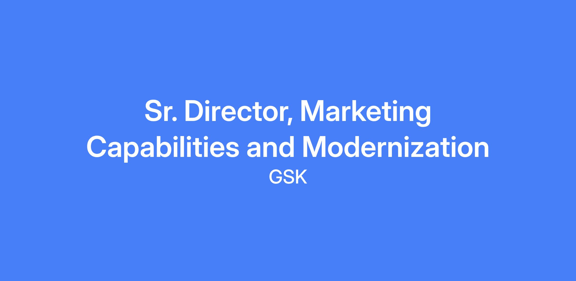 The Sr. Director Marketing Capabilities and Modernization role is a senior leadership position responsible for modernizing marketing across GSK US Commercial. It drives enterprise marketing competencies, sets new standards, builds future-ready skills, and transforms ways of working through partnership with the Marketing Leadership Team, Tech, Insights & Analytics, Sales, and other cross-functional stakeholders. The role requires strong change management to achieve a step change in how U.S. Commercial delivers marketing.