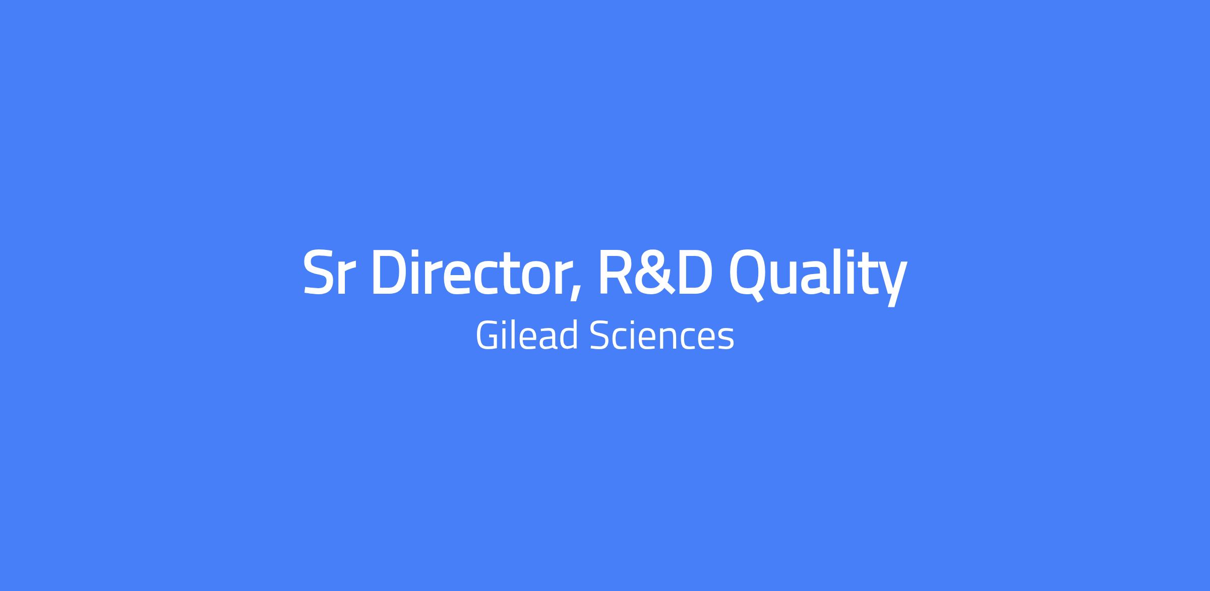 Senior Director, Inflammation TA Lead, R&D Program Quality, Foster City, CA. Drives the strategy for a global team providing GCP quality oversight for Inflammation products in the Gilead Development portfolio. Partners with R&D functions to apply deep GCP expertise and a proactive, risk-based mindset that accelerates confident decision-making. A key contributor to the R&D Quality Extended Leadership Team, championing a strong culture of Quality across development to deliver better outcomes for patients.