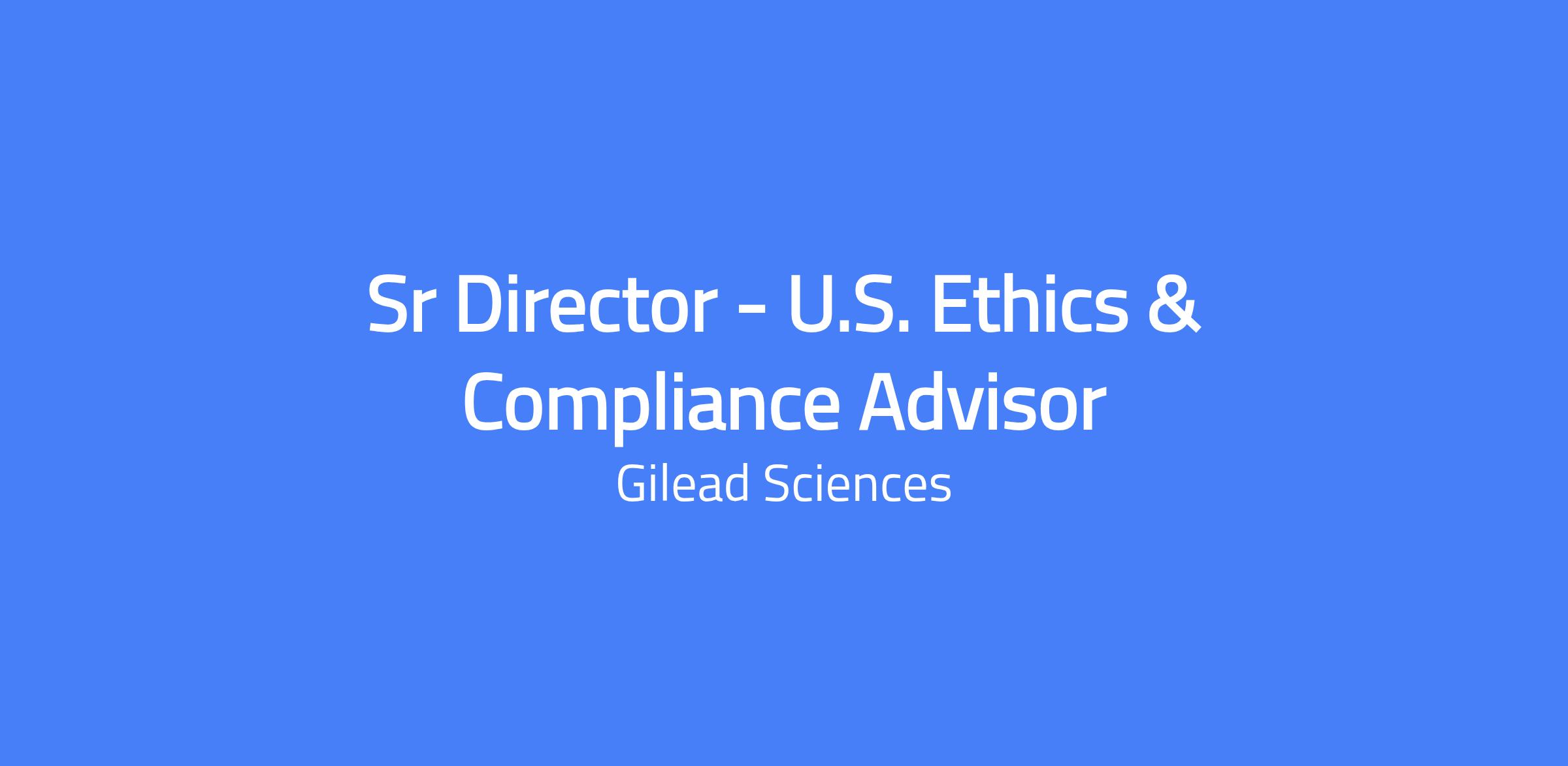 Senior Director - U.S. Ethics & Compliance Advisor at Gilead. Acts as the key point of ethics and compliance support for relevant Gilead Commercial activities, partnering with leaders across Legal, Commercial, Medical, and Clinical Development to build and integrate the compliance program into the US organization. Leads the development and execution of training, risk assessment, and mitigation efforts to support ethical and compliant business operations, while fostering a high-performance culture and helping advance the company’s mission.