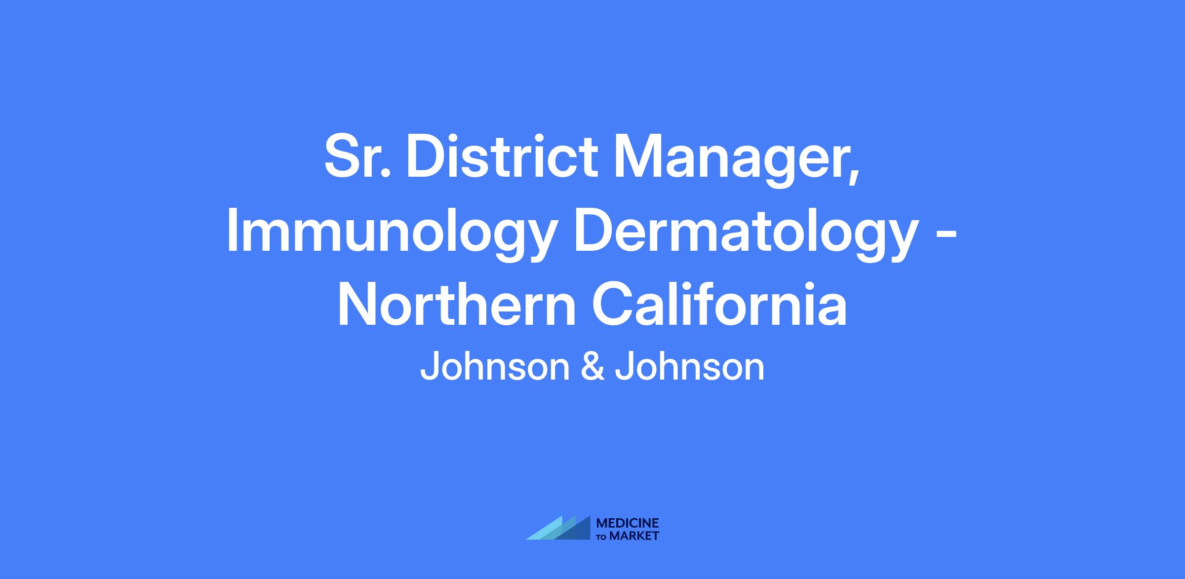 Senior District Manager, Immunology Dermatology βΓΓ¬ Northern California. Leads a district across multiple California locations to develop and execute Dermatology product strategy within the Janssen Biotech, Inc. portfolio, mentors teams, and drives customer relationships to advance immunology dermatology treatments.