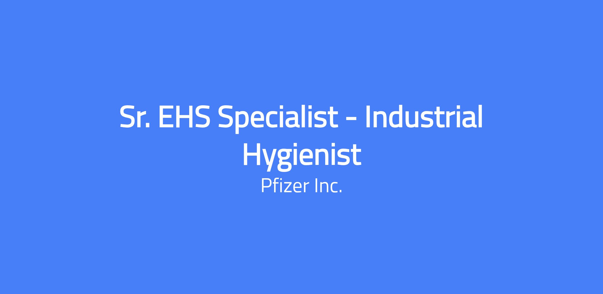 Why Patients Need You Pfizerâs Environmental, Health and Safety team is critical to ensuring the highest safety standards are met for our patients and our colleagues. You will be part of an innovative community dedicated to delivering excellence which enables Pfizer to get our medicines in the hands of the people who need them most more efficiently, and safer, than ever before. What You Will Achieve The EHS Specialist â Industrial Hygiene will be part of a dynamic team of experts in Environment, Health & Safety. Due to the importance of this team for Pfizer's colleagues and patients, the organization relies heavily on its team members' timely actions and efficiency. You will be engaged in various Industrial Hygiene activities such as air monitoring methods, sample handling, data analysis, ventilation, radiation, use of air monitoring equipment and report writing. This position participates in sampling strategies and program monitoring for all industrial hygiene standards, systems, and work processes. As an EHS Specialist focusing on Industrial Hygiene, your focus on the job will contribute to achieving project tasks and goals. Through your domain knowledge and commitment, you will create a collaborative team environment for your colleagues and contractors.⯠This position reports directly to the Senior Manager, Environmental, Health, & Safety. How You Will Achieve It Assist in the development of siteâs industrial hygiene program with the area/department ownersâ participation in assuring they comply with OSHA regulations and Pfizer standards. Conducts industrial hygiene assessments of new products, processes, capital investments and assist to identify and implement controls to assure colleaguesâ protection. Develop hands-on practical trainings to increase the knowledge of industrial hygiene. Implements tools that assess occupational exposures using strategies that align with the AIHA Exposure Assessment Strategy (or equivalent). Participates in the implementation of industrial hygiene control and system improvements across the site. Conducts investigations of working conditions for the prevention of occupational disease and industrial health hazards, with specific reference to toxic substances, noise, and harmful physical agents. Develop and implement technical sampling strategies measuring airborne concentrations of dust, gases, and mists; uses air sampling instruments and collection devices collecting samples of materials to detect and evaluate employee exposure including providing solutions and determining the effectiveness of engineering and administrative controls Supports Colleague Wellness on occupational exposures and medical surveillance activities. Conducts ergonomic assessments, provides improvement recommendations, and leverages the EHS management system to track recommendations. Provides industrial hygiene expertise to the emergency response team. Qualifications Must-Have High school diploma (or equivalent) with 8+ years of experience or associateâs degree with 6+ years of experience or BA/BS with 2+ years of experience or MBA/MS with any years of relevant experience Experience working in a Chemical, Petrochemical, Pharmaceutical or similar manufacturing environment. Experience with identifying implementing and testing effectiveness of appropriate control technologies for potent compound manufacturing and handling. Competency in MS Office (Word, Excel, Project Management, Power Point and TEAMS). Proven experience of working in the field with area owners to identify and implement the best solutions. Experience in conducting incident investigations. Nice-to-Have Experience in Project Management and Lean Concepts. â¯â¯ PHYSICAL/MENTAL REQUIREMENTS Able to stand or walk for periods of 8 hours or more Sit extended period Must be able to pass a medical exam for use of a respirator Must be able to perform complex tasks and handle multiple priorities and can perform exceptionally under high stress conditions. Able to meet deadlines, both internally and externally Ability to work on teams NON-STANDARD WORK SCHEDULE, TRAVEL OR ENVIRONMENT REQUIREMENTS Requirement to be on call.⯠Other Job Details: Relocation supports available Last day to apply: April 15th Work Location Assignment: On premise The annual base salary for this position ranges from $82,700.00 to $137,900.00. In addition, this position is eligible for participation in Pfizerâs Global Performance Plan with a bonus target of 10.0% of the base salary. We offer comprehensive and generous benefits and programs to help our colleagues lead healthy lives and to support each of lifeâs moments. Benefits offered include a 401(k) plan with Pfizer Matching Contributions and an additional Pfizer Retirement Savings Contribution, paid vacation, holiday and personal days, paid caregiver/parental and medical leave, and health benefits to include medical, prescription drug, dental and vision coverage. Learn more at Pfizer Candidate Site â U.S. Benefits | (uscandidates.mypfizerbenefits.com). Pfizer compensation structures and benefit packages are aligned based on the location of hire. The United States salary range provided does not apply to Tampa, FL or any location outside of the United States. Relocation assistance may be available based on business needs and/or eligibility. Candidates must be authorized to be employed in the U.S. by any employer. U.S. work visa sponsorship (such as TN, O-1, H-1B, etc.) is not available for this role now or in the future. Sunshine Act Pfizer reports payments and other transfers of value to health care providers as required by federal and state transparency laws and implementing regulations. These laws and regulations require Pfizer to provide government agencies with information such as a health care providerâs name, address and the type of payments or other value received, generally for public disclosure. Subject to further legal review and statutory or regulatory clarification, which Pfizer