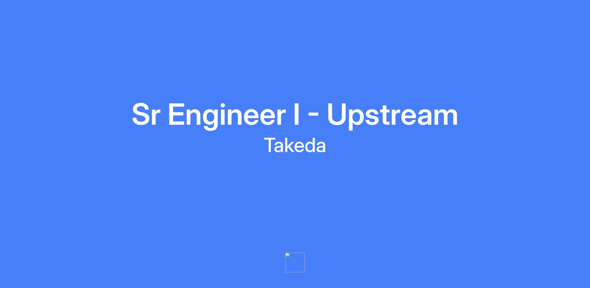 Sr Engineer I - Upstream at Takeda. Responsible for providing technical and scientific tools to support upstream processes for commercial production and late stage clinical production of Biologics, including process and product investigations/troubleshooting, continuous process improvement and life-cycle management, technology transfer and process validation. You will lead or contribute as a key member of various cross-functional teams and interact extensively with other departments within Takeda.