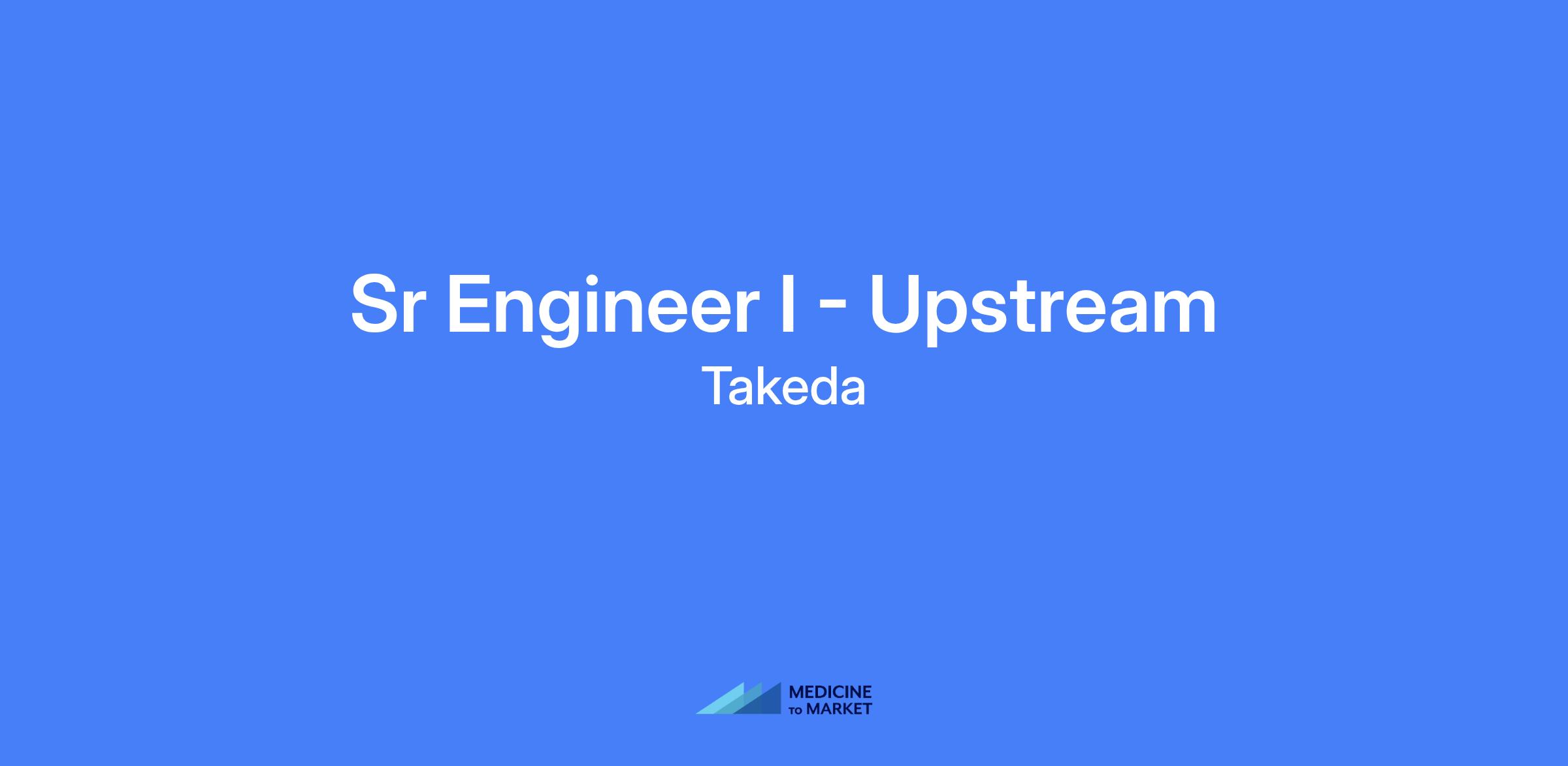 Sr Engineer I - Upstream at Takeda. Responsible for providing technical and scientific tools to support upstream processes for commercial production and late stage clinical production of Biologics, including process and product investigations/troubleshooting, continuous process improvement and life-cycle management, technology transfer and process validation. You will lead or contribute as a key member of various cross-functional teams and interact extensively with other departments within Takeda.
