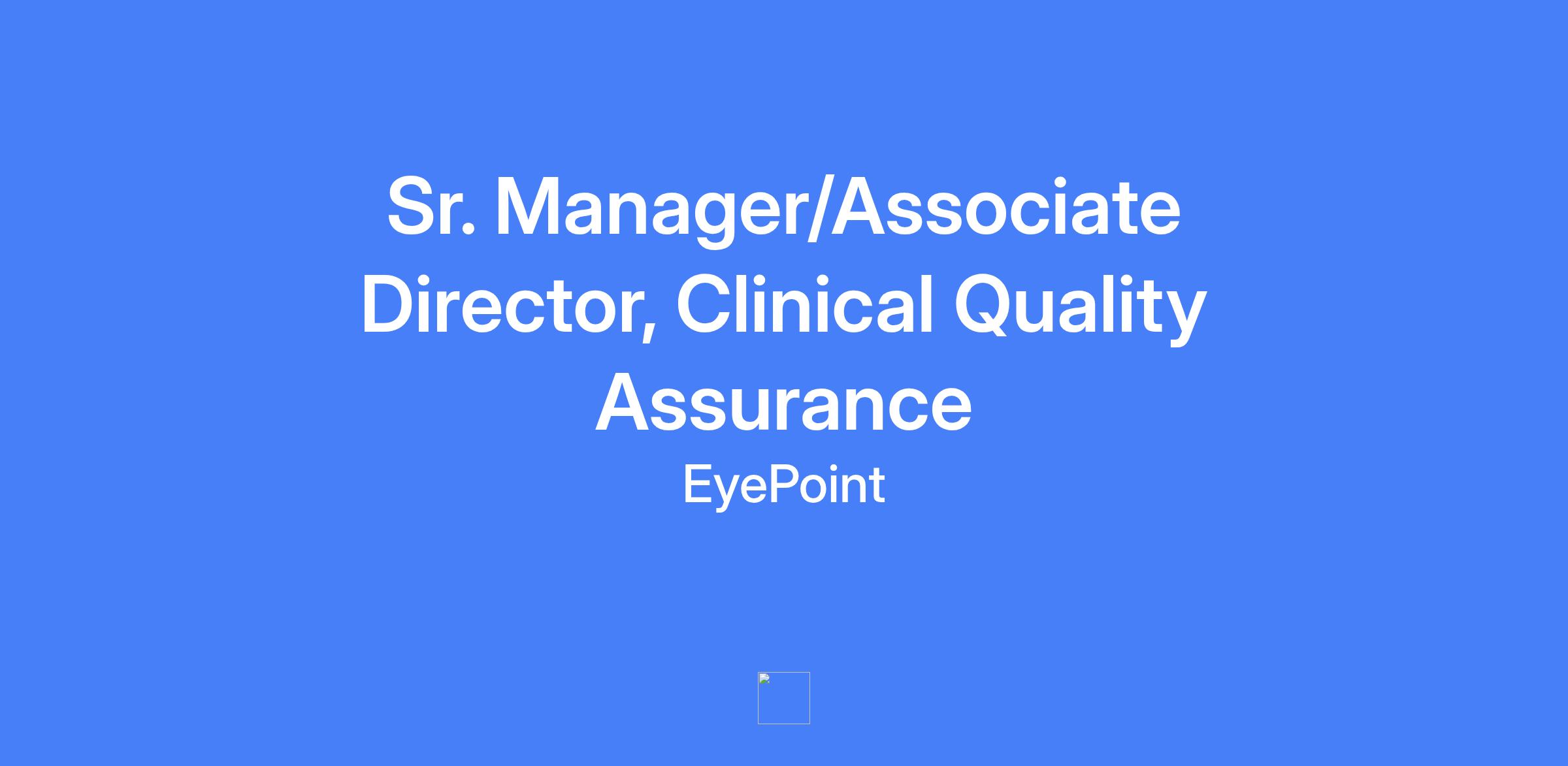 Sr. Manager/Associate Director, Clinical Quality Assurance. This remote role reports to the Director, Clinical Quality Assurance.