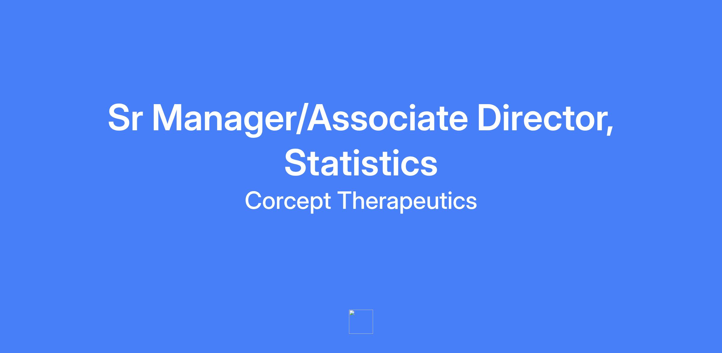 The Sr Manager/Associate Director, Statistics is responsible for leading the execution of statistical components of Corcept studies. This position will manage projects.