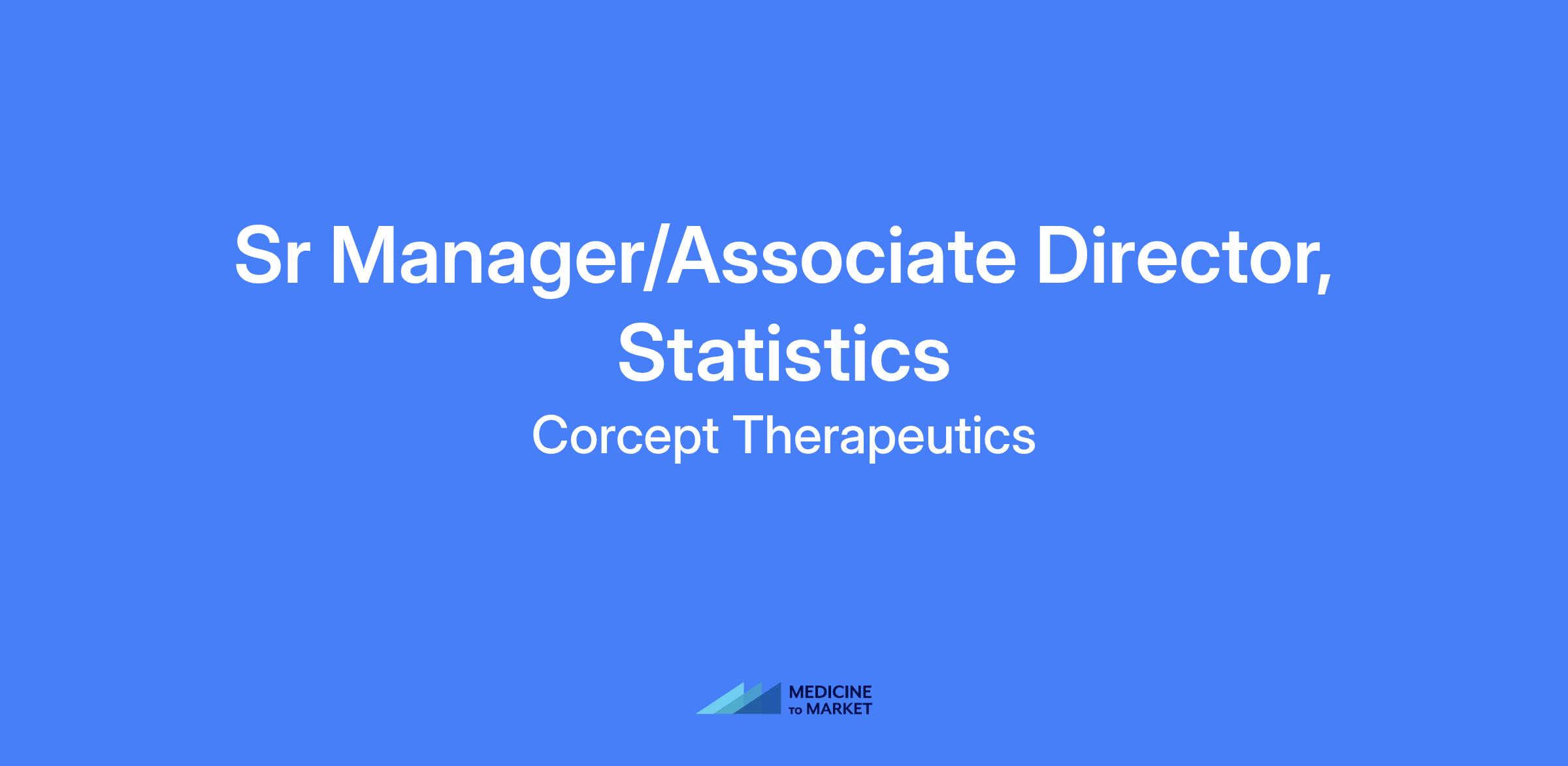 The Sr Manager/Associate Director, Statistics is responsible for leading the execution of statistical components of Corcept studies. This position will manage projects.