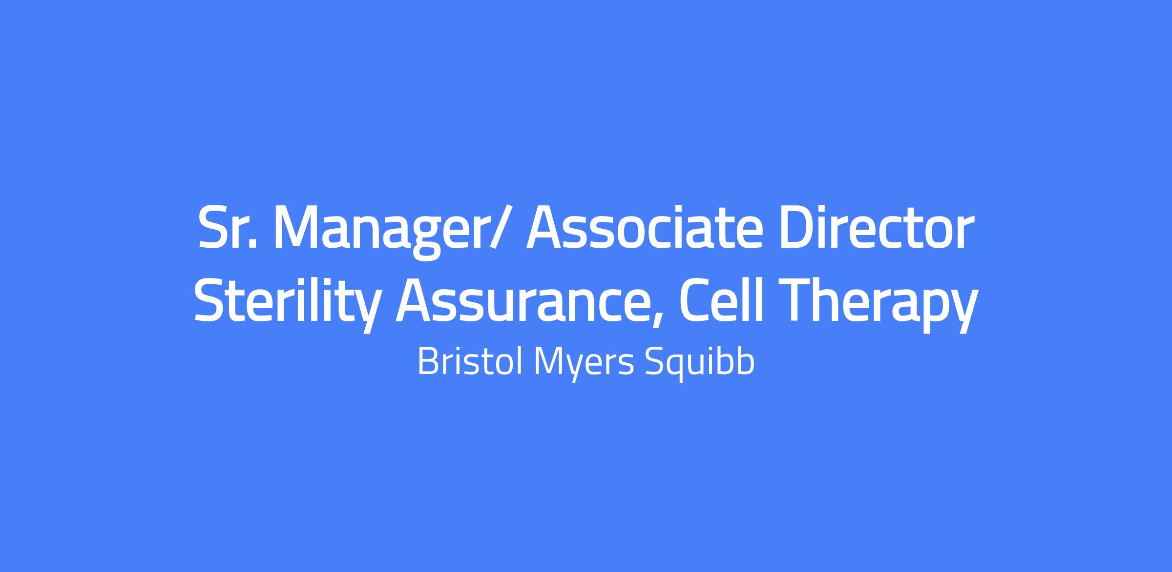 Sr. Manager/ Associate Director Sterility Assurance, Cell Therapy