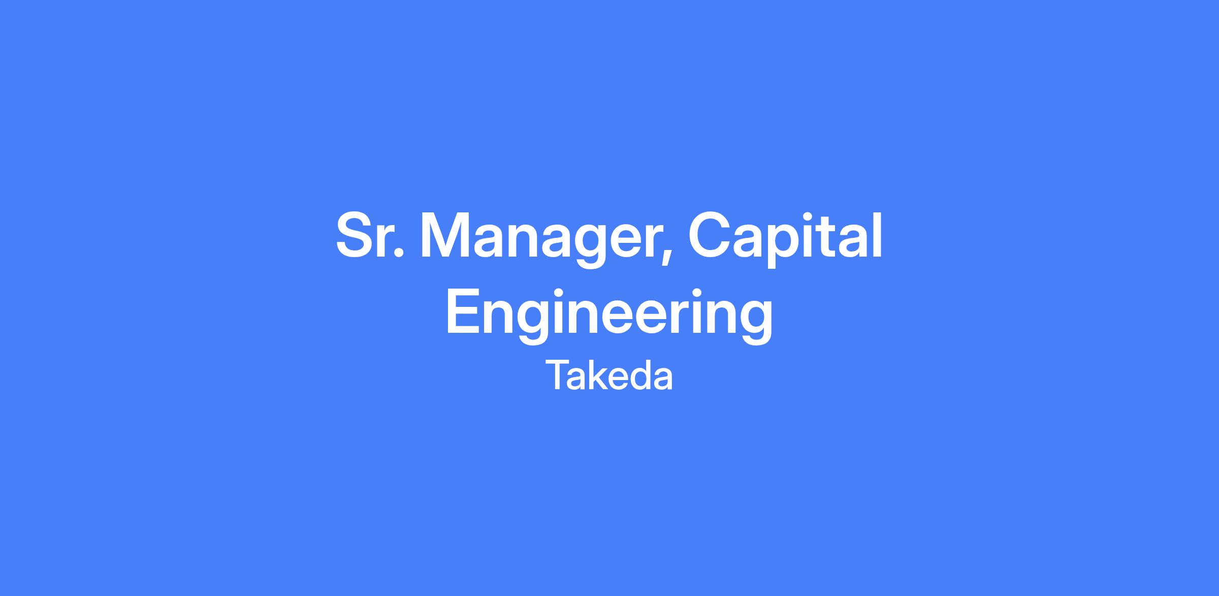 At Takeda’s Los Angeles Site, we are committed to producing high-quality plasma-derived therapies that improve and sustain lives. To support this mission, we continuously invest in facility and process improvements through our Capital Engineering team. As a Sr. Manager, Capital Engineering, you will oversee the planning, implementation, and execution of capital projects — from facility and equipment upgrades to large-scale strategic capacity expansions. You will ensure projects are delivered on time, within budget, and to the highest safety and quality standards. Although this is an individual contributor role, it requires strong leadership, strategic influence, and cross-functional collaboration to drive success across a complex manufacturing environment.