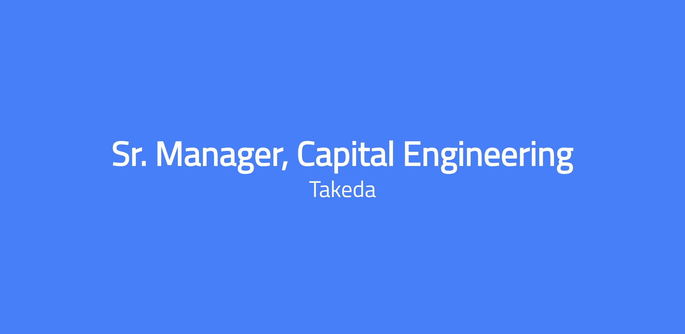 At Takeda’s Los Angeles Site, we are committed to producing high-quality plasma-derived therapies that improve and sustain lives. To support this mission, we continuously invest in facility and process improvements through our Capital Engineering team. As a Sr. Manager, Capital Engineering, you will oversee the planning, implementation, and execution of capital projects — from facility and equipment upgrades to large-scale strategic capacity expansions. You will ensure projects are delivered on time, within budget, and to the highest safety and quality standards. Although this is an individual contributor role, it requires strong leadership, strategic influence, and cross-functional collaboration to drive success across a complex manufacturing environment.