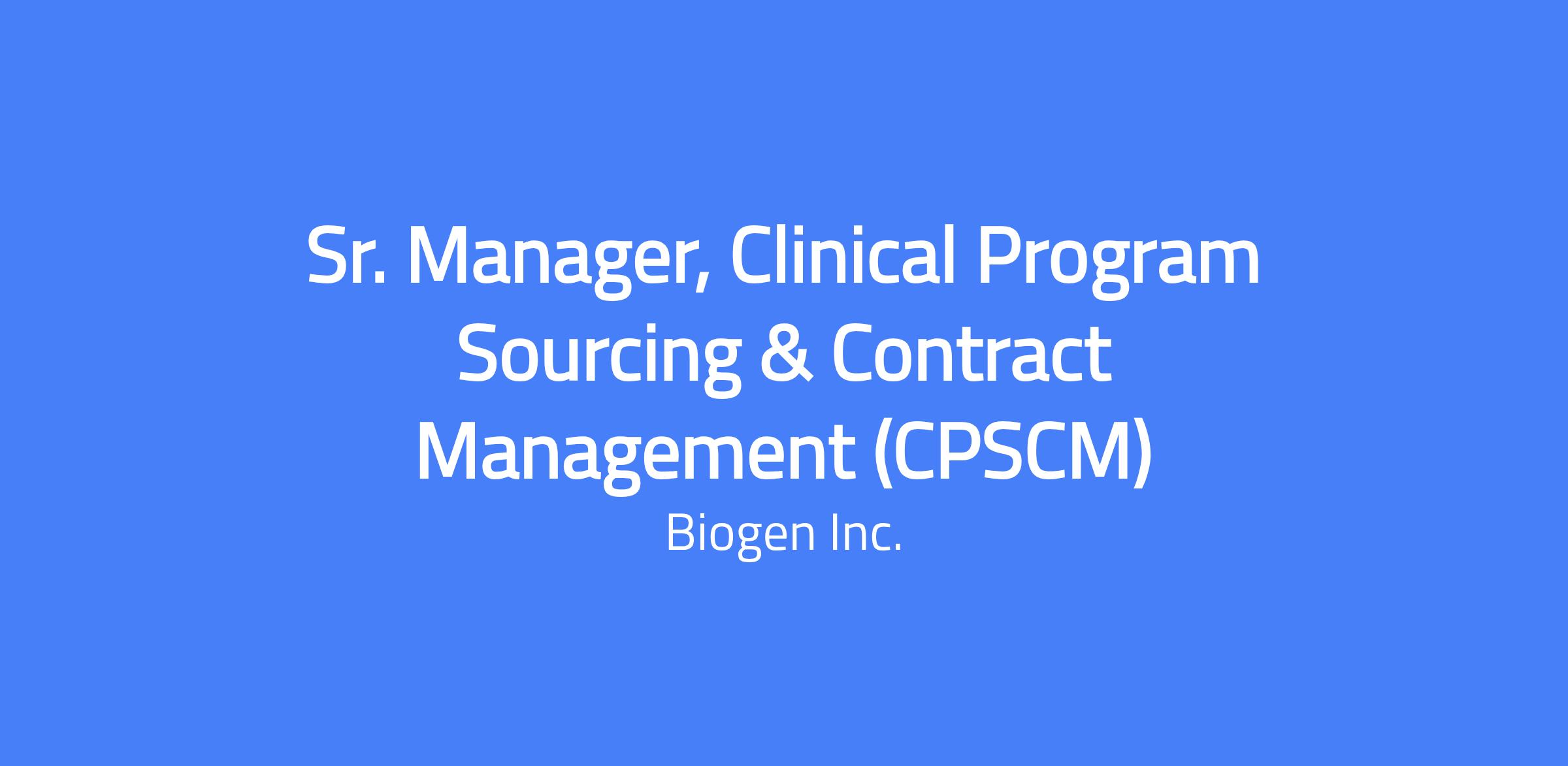 Sr. Manager, Clinical Program Sourcing & Contract Management (CPSCM)